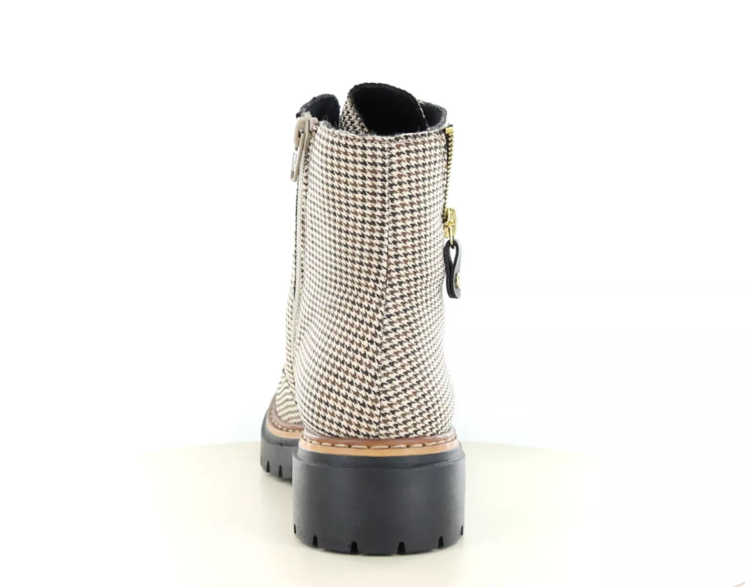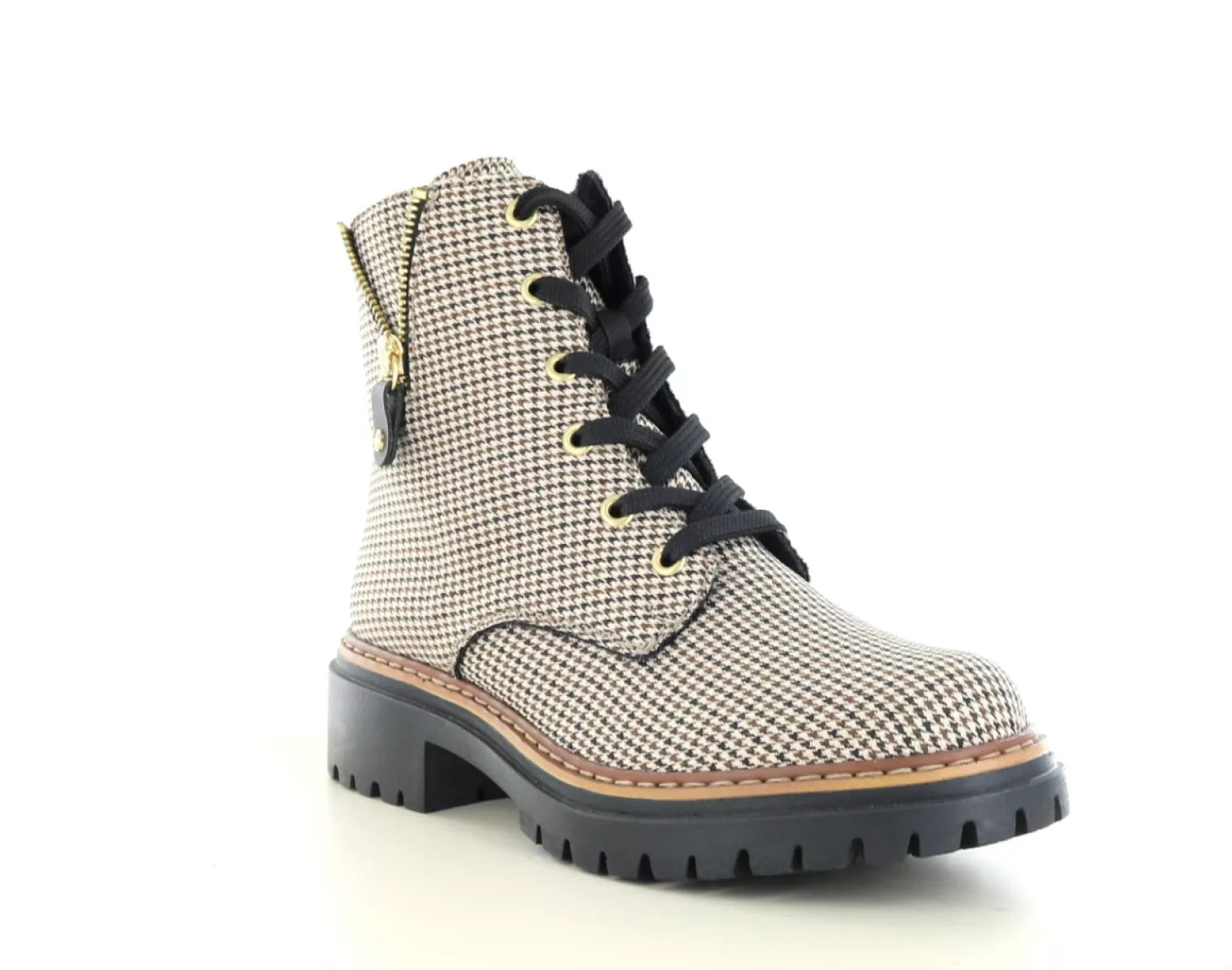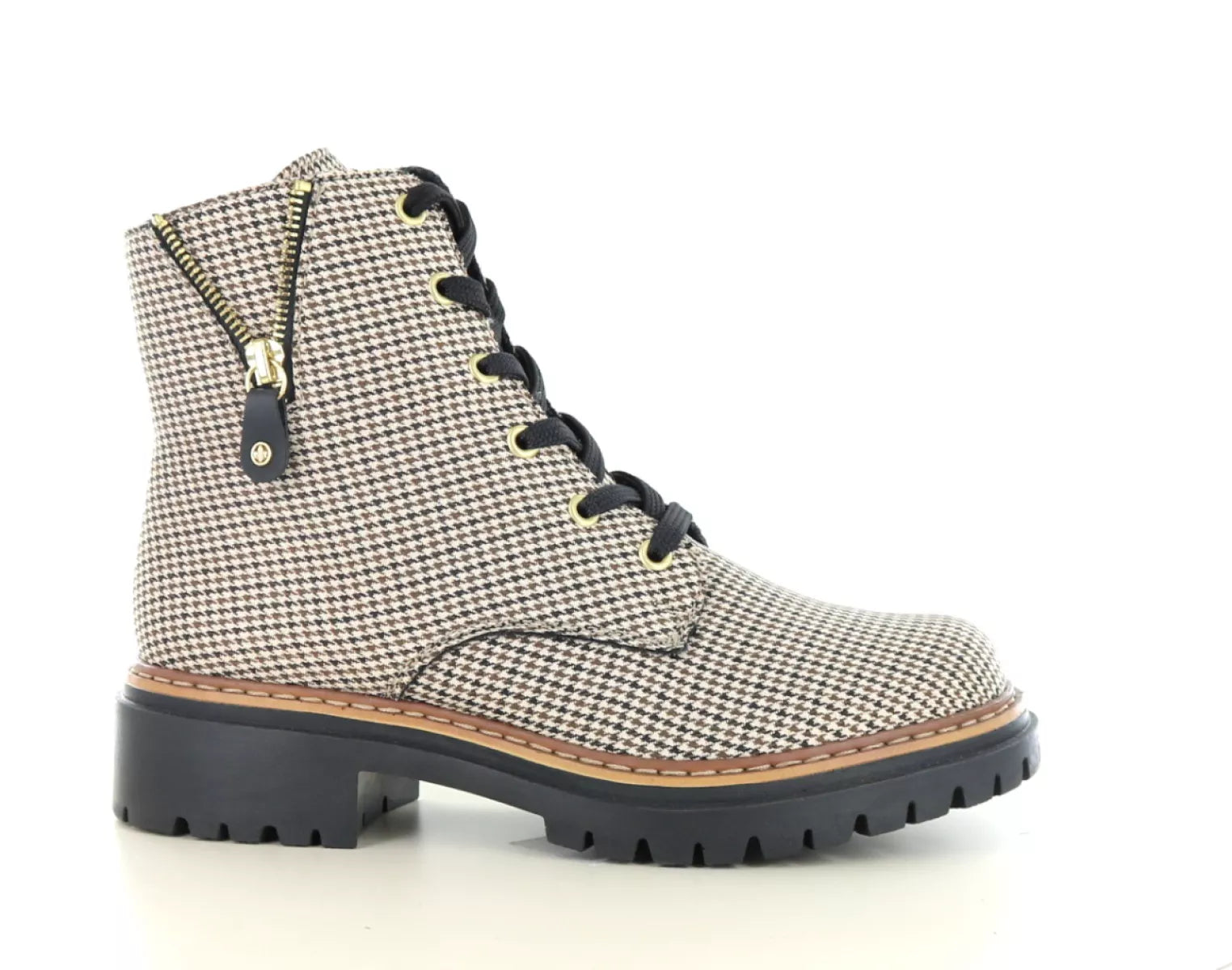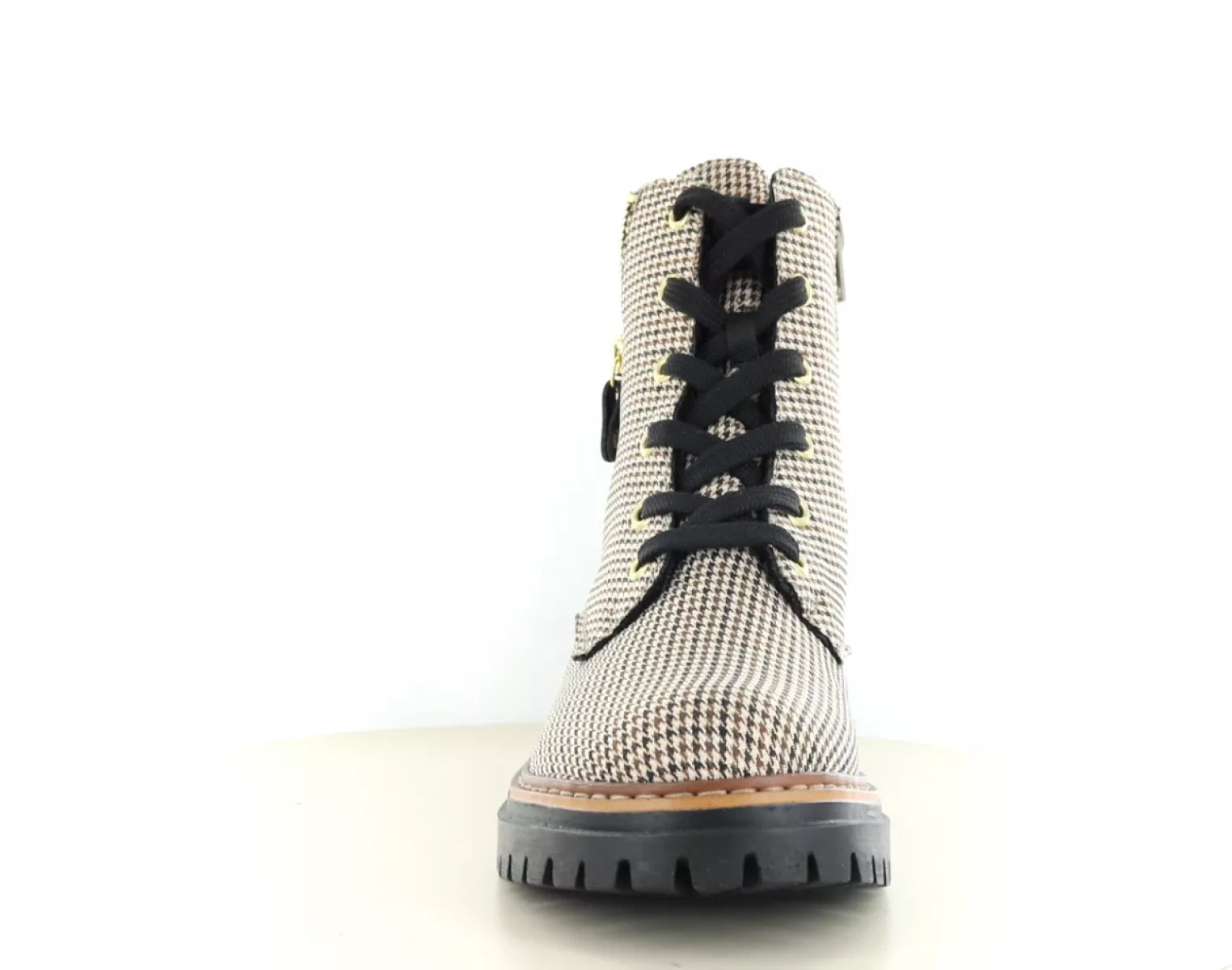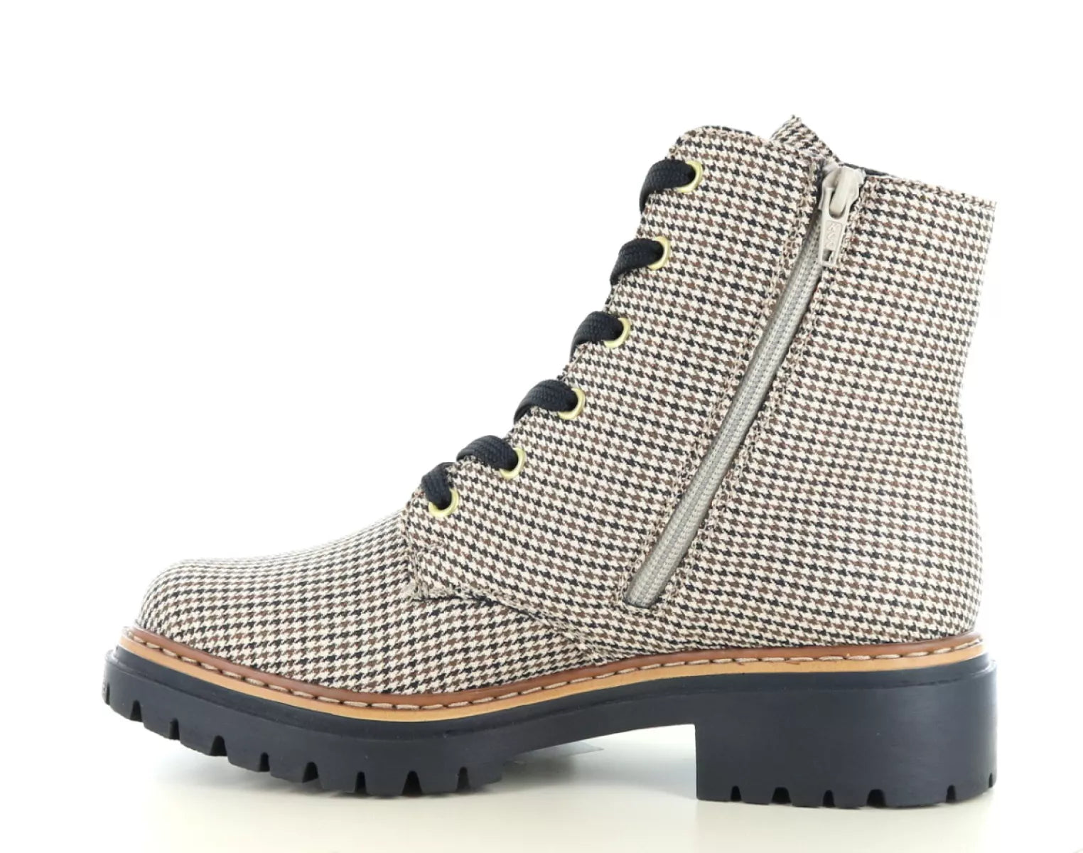 - Modischer halbhoher Schnürboot im beige/schwarzen Karo-Print mit edlen Details
