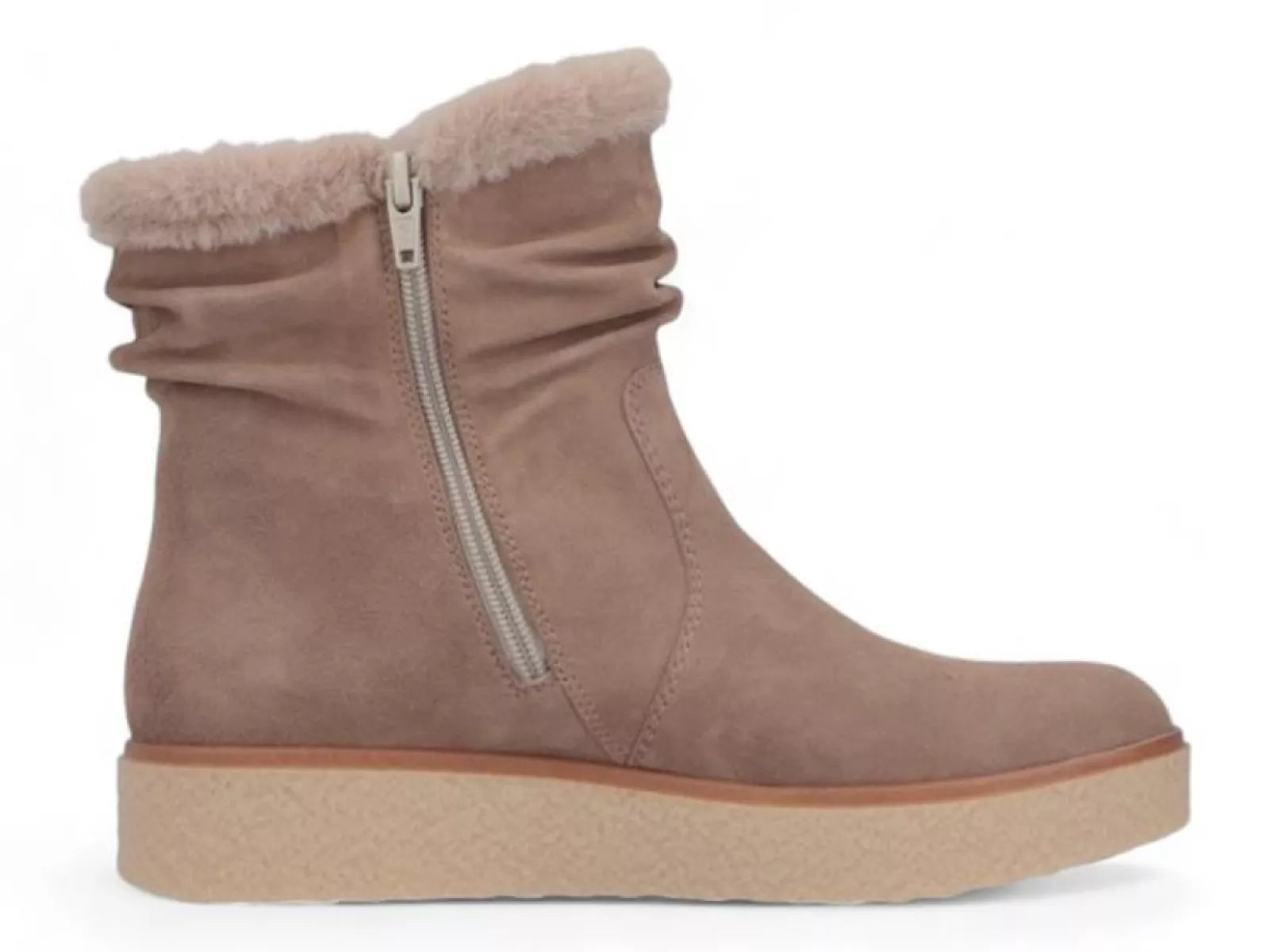 Der Rieker Y0070 Stiefelette vereint Stil mit höchstem Komfort und ist perfekt für kältere Tage. Dieser Damenstiefel in elegantem Taupe-Ton besteht aus strapazierfähigem Wildleder, das sich weich und geschmeidig anfühlt. Innen ist er mit warmer, feuchtigkeitsregulierender Merinowolle gefüttert, die Ihre Füße auch bei kalten Temperaturen warm und bequem hält. Die rutschfeste TR-Sohle sorgt für Stabilität und Dämpfung – ideal für lange Spaziergänge oder alltägliche Aktivitäten.