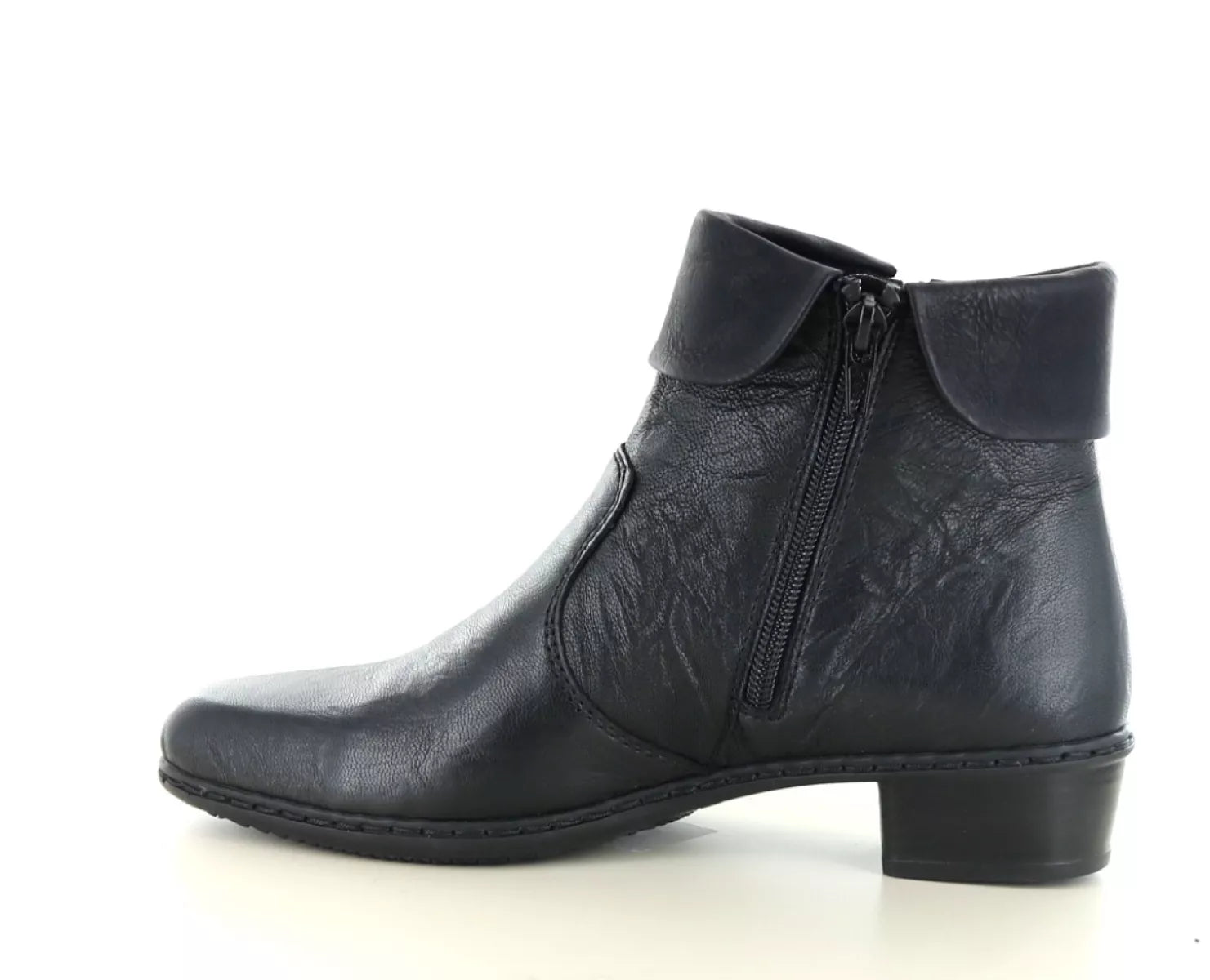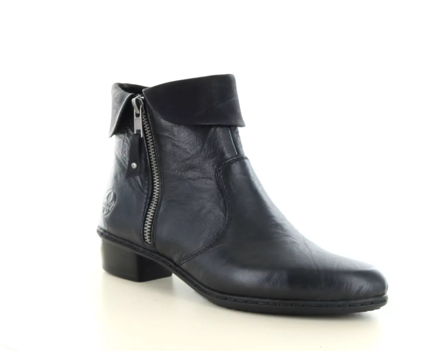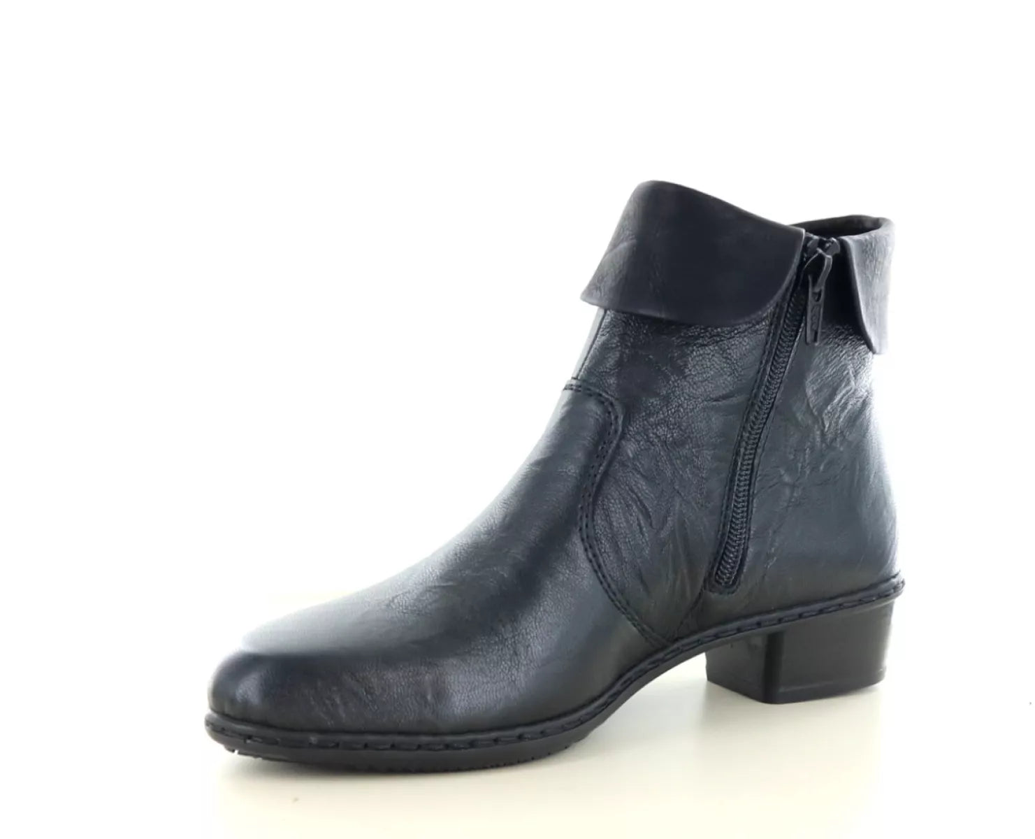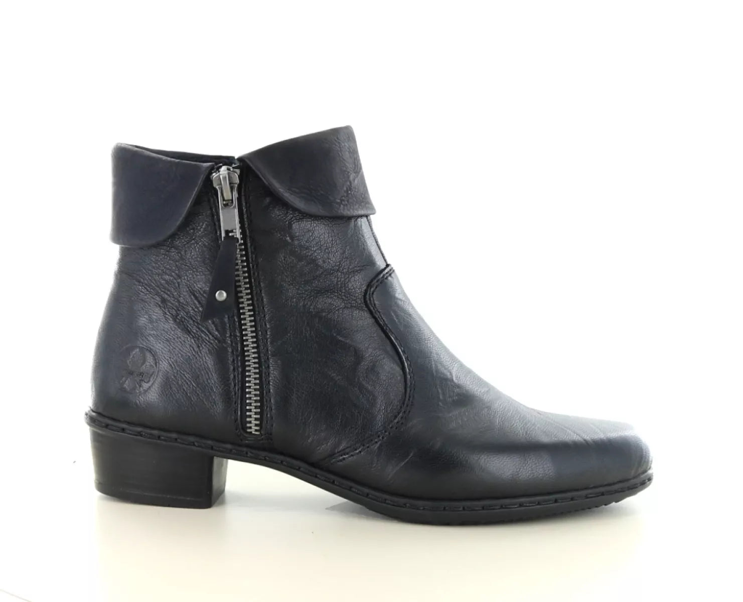 Rieker Y07A8 – Schwarze Damenstiefeletten aus Leder mit Reißverschluss