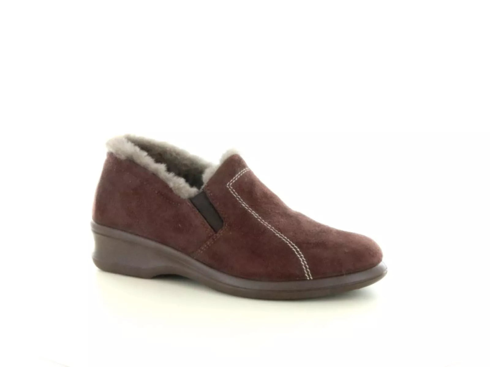 Der 2516 von Rohde ist ein wunderschöner geschlossener Damen-Slipper aus Wildleder . Dieser Slipper ist in der Farbe 71 Espresso gefertigt . Der Verschluss erfolgt mittels einer Stufe . Dieser Slipper hat ein warmes Wollfutter.