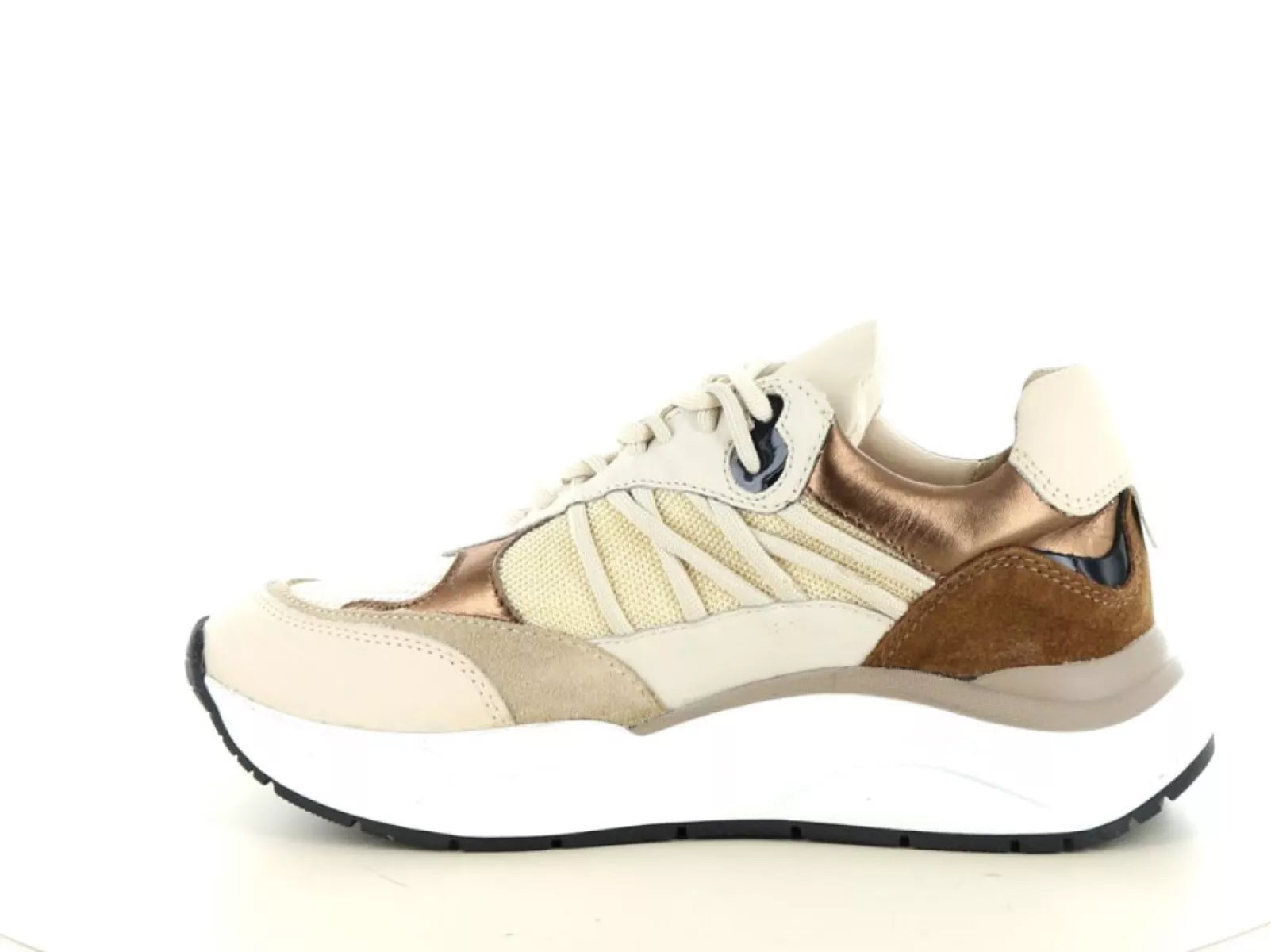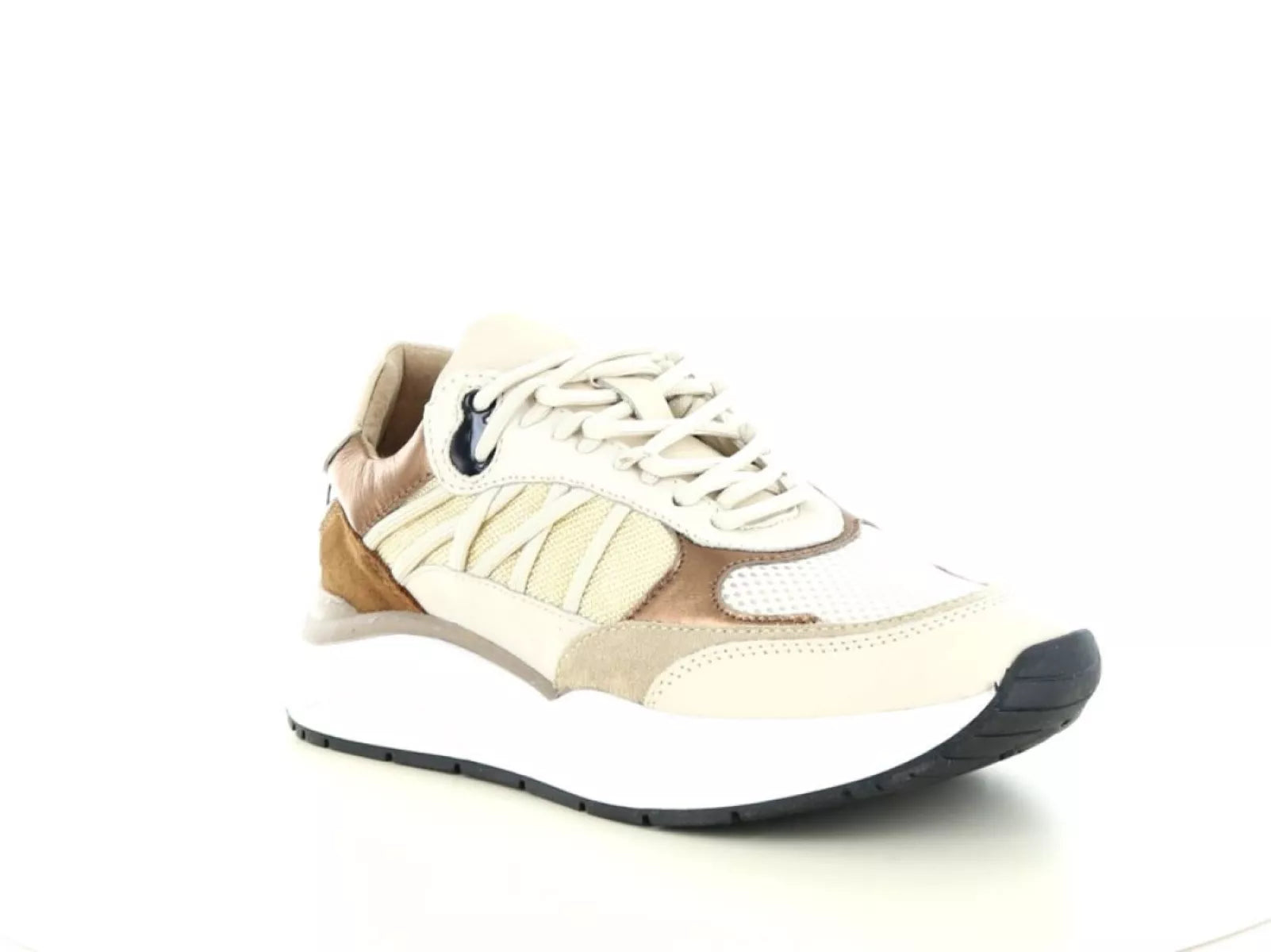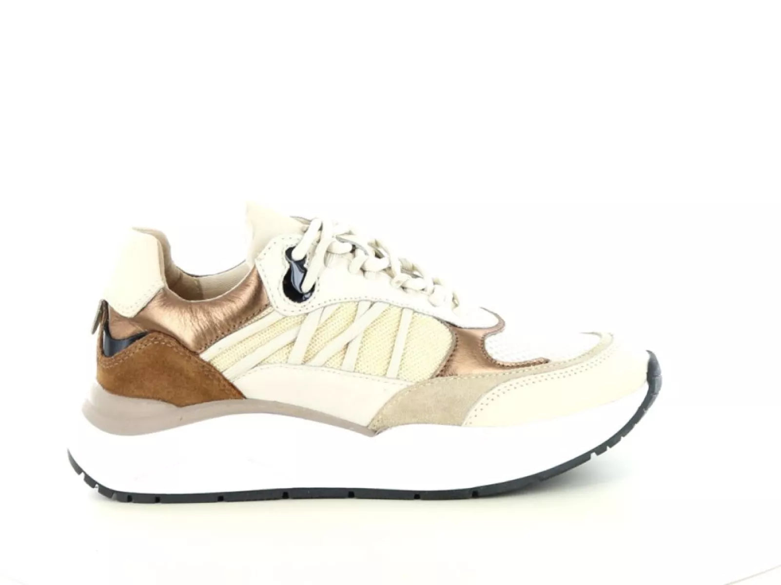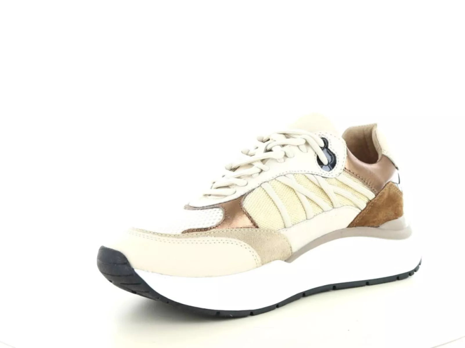 Der Schnürverschluss sorgt für einen festen und individuellen Sitz, während die ca. 3 cm dicke Sohle nicht nur einen trendigen Look verleiht, sondern auch zusätzliche Dämpfung und Halt beim Gehen bietet. Das herausnehmbare Fußbett ermöglicht die Verwendung eigener Einlagen und macht diesen Sneaker so für individuelle Fußbedürfnisse geeignet.