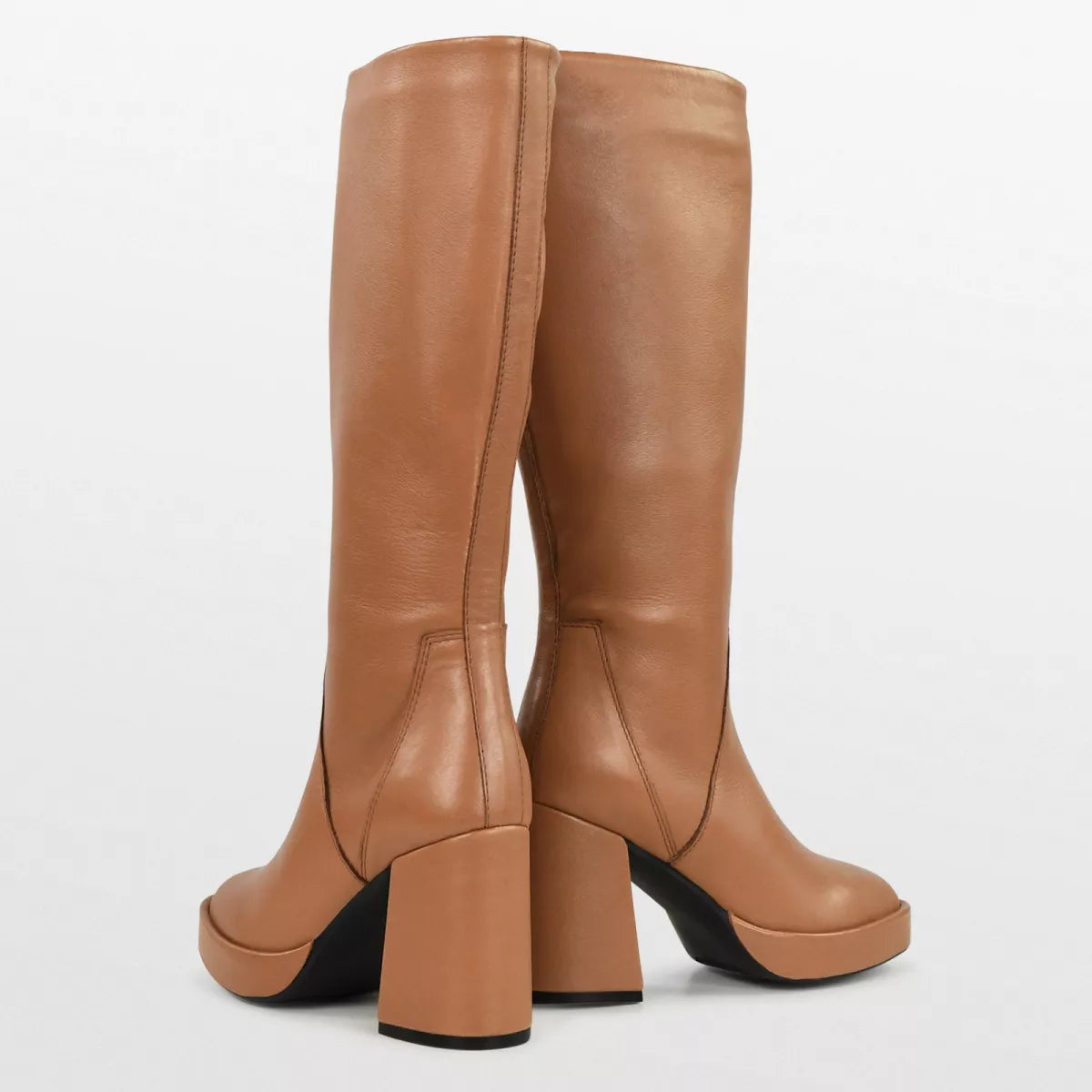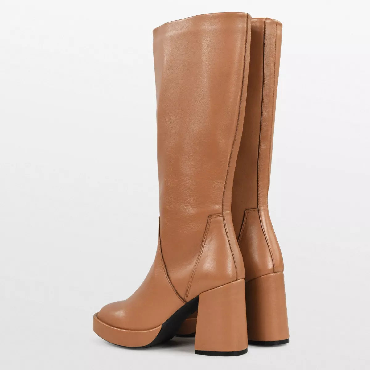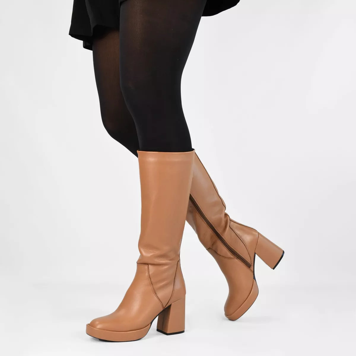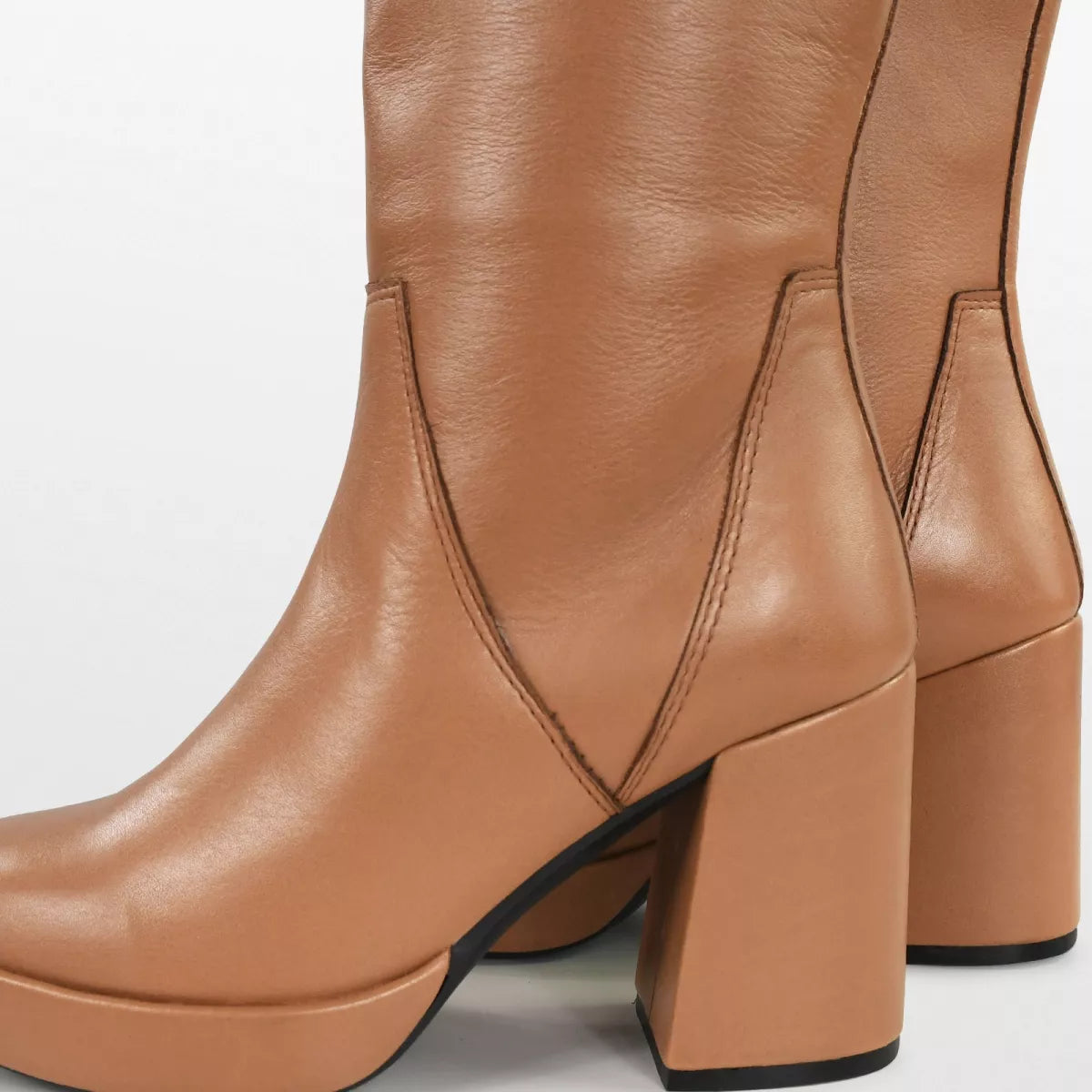 Der Rexy 01 von PS Poelman ist ein wunderschöner hoher Stiefel aus Leder . Dieser Absatzstiefel hat kein Wechselfußbett und ist nicht für Einlagen geeignet. Dieser Schuh wird in der Farbe Cognac gefertigt . Der Verschluss erfolgt mittels Reißverschluss .