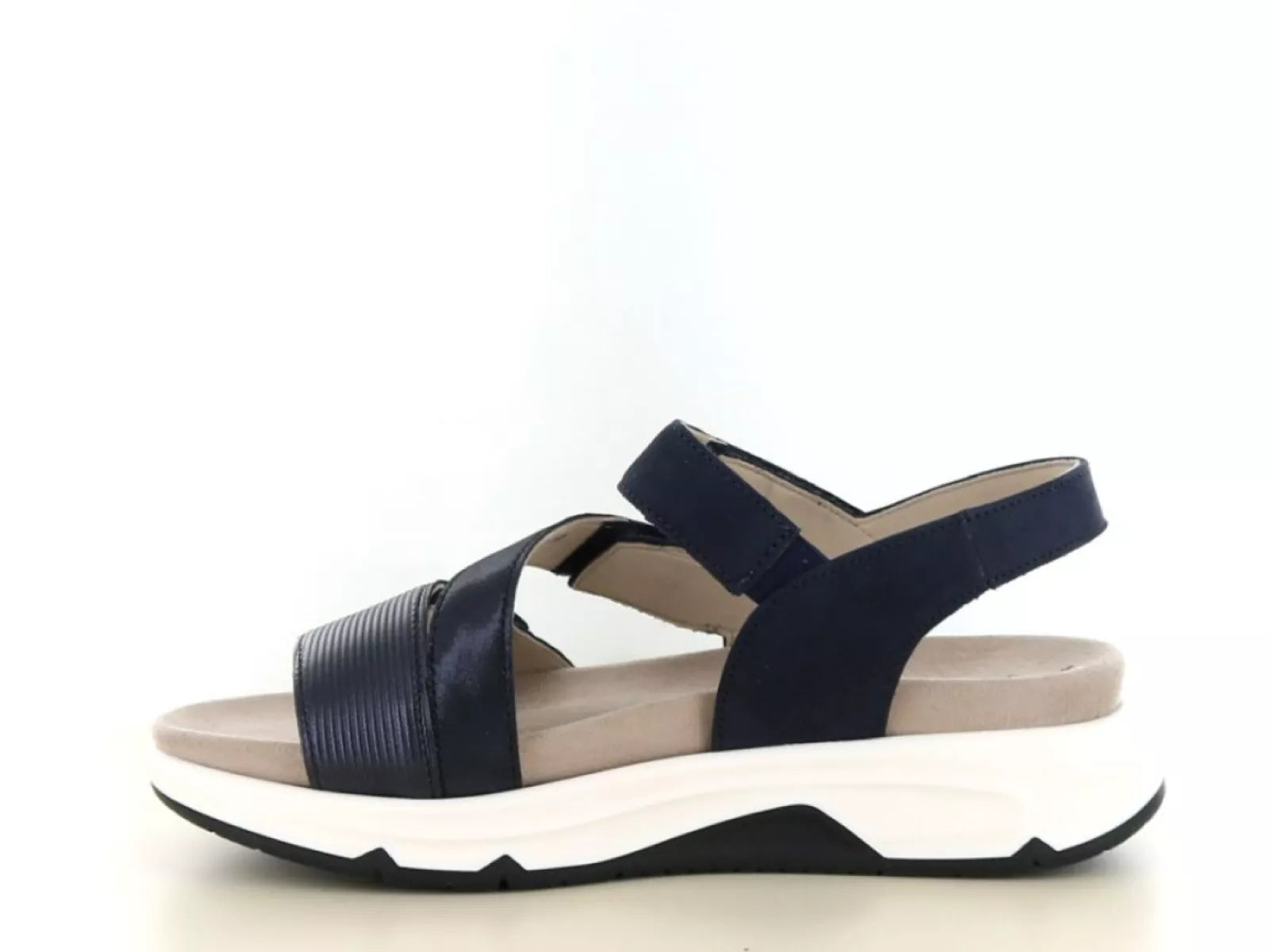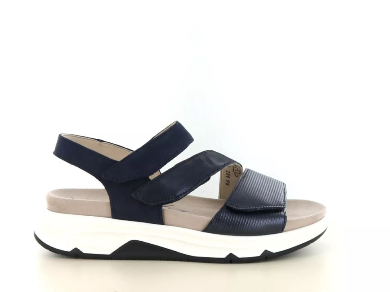 Die Gabor Rolling Soft 86.882 ist eine bequeme Damensandale, ideal für Frauen, die Stil und Komfort vereinen möchten. Gefertigt aus hochwertigem Nubukleder in der Farbe 66 Marine Combi , besticht diese Sandale durch ihren modernen und sportlichen Look. Der dunkelblaue Farbton in Kombination mit dezenten Strukturdetails macht sie vielseitig kombinierbar und perfekt für sommerliche Outfits.