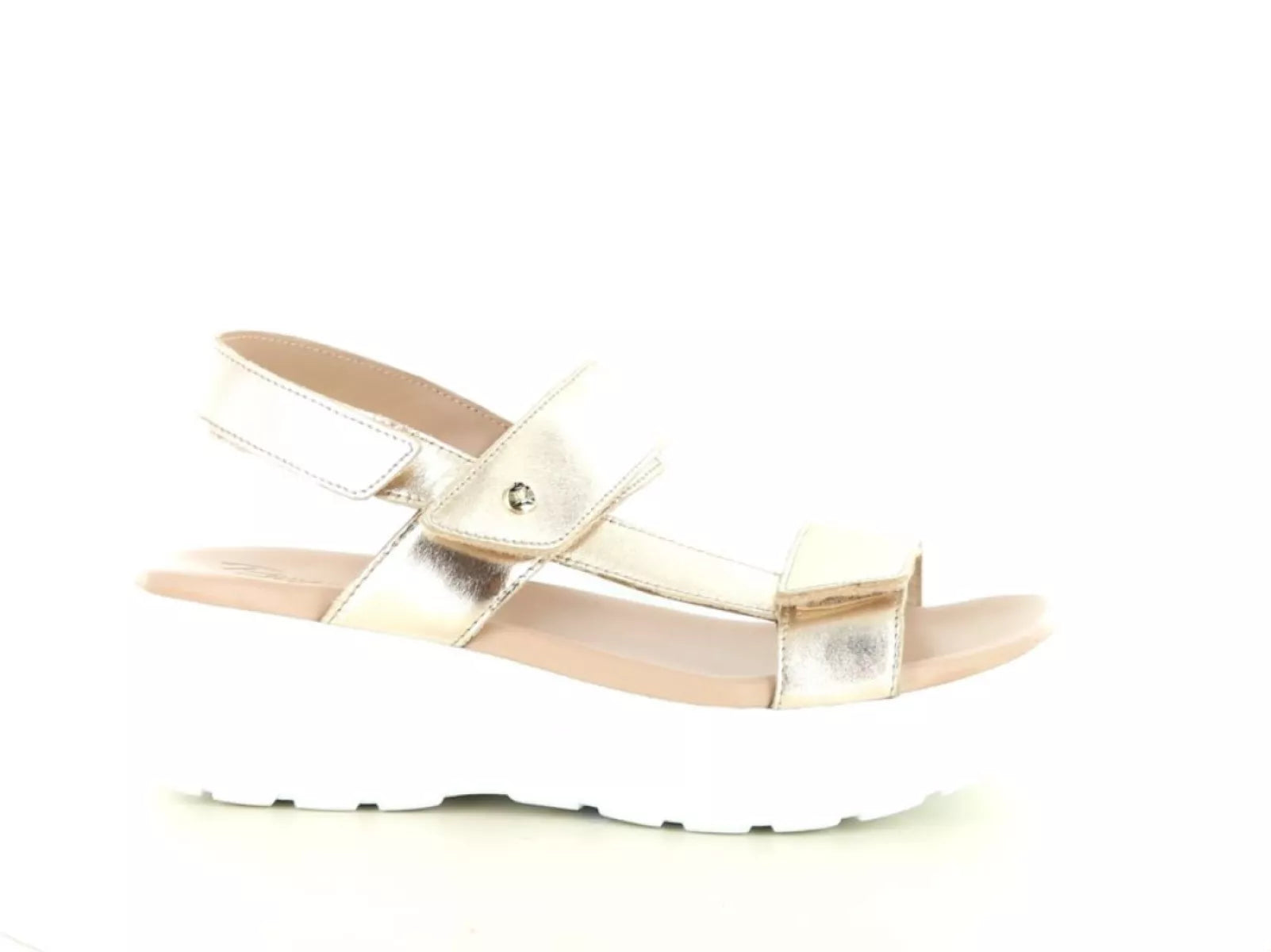 Die Panama Jack Noor Shine B1 ist eine elegante und bequeme Damensandale in stilvollem Gold. Das Obermaterial besteht aus hochwertigem Nappaleder, das für einen luxuriösen Look und Langlebigkeit sorgt. Das Lederfutter bietet atmungsaktiven Komfort – ideal für warme Sommertage.