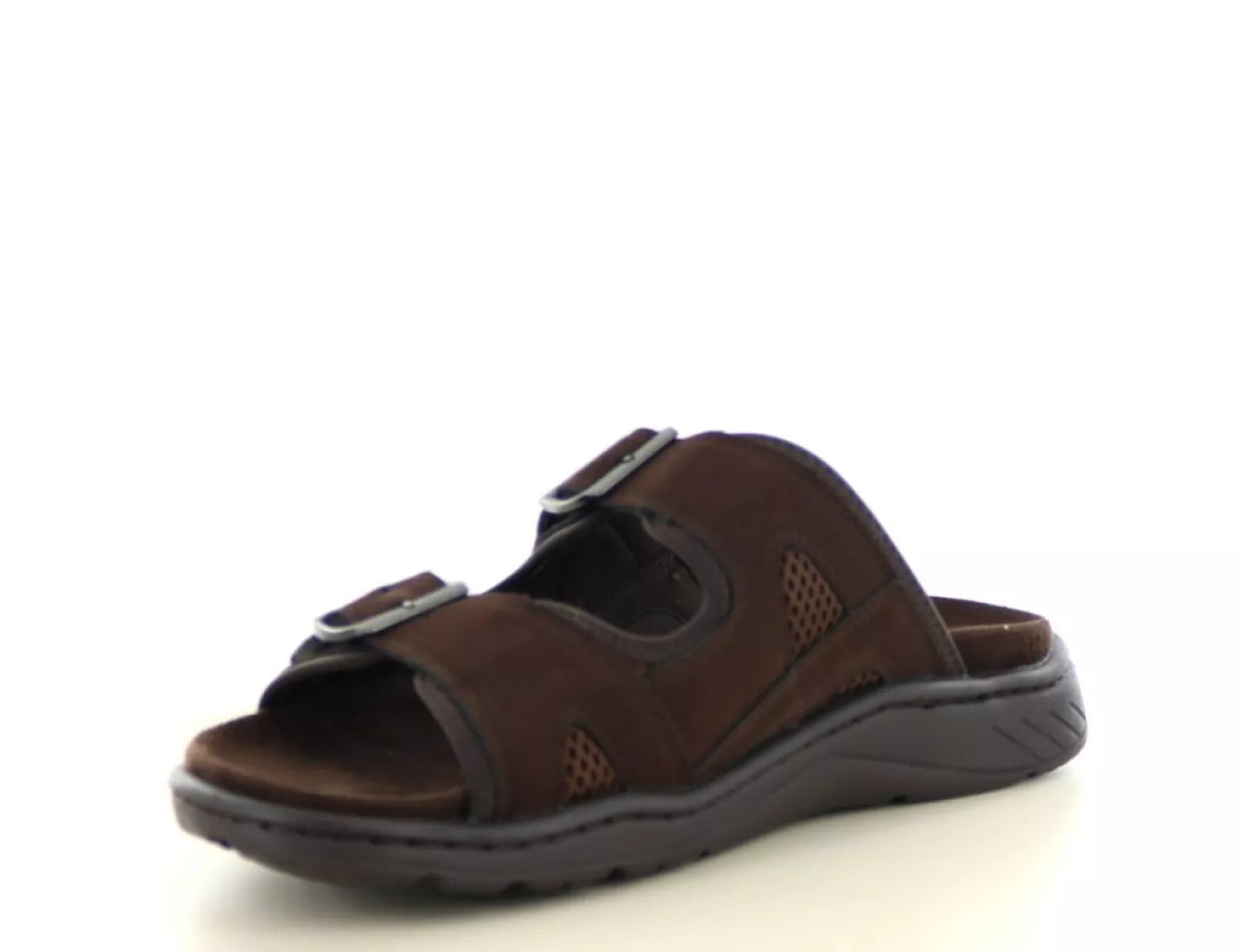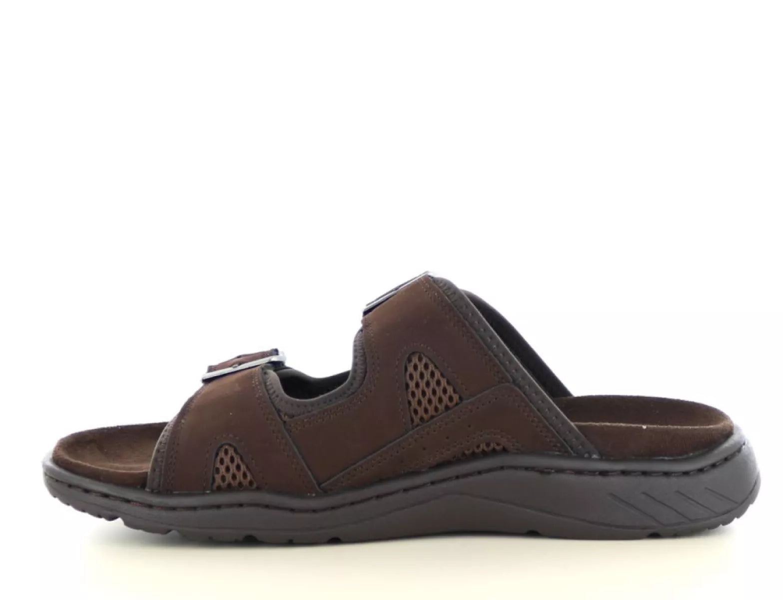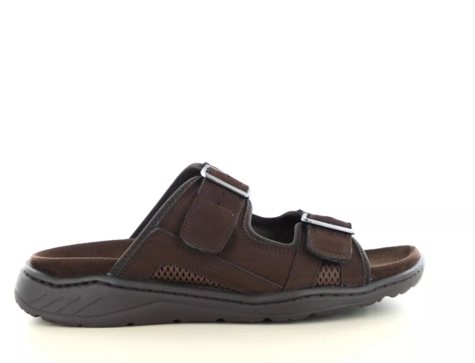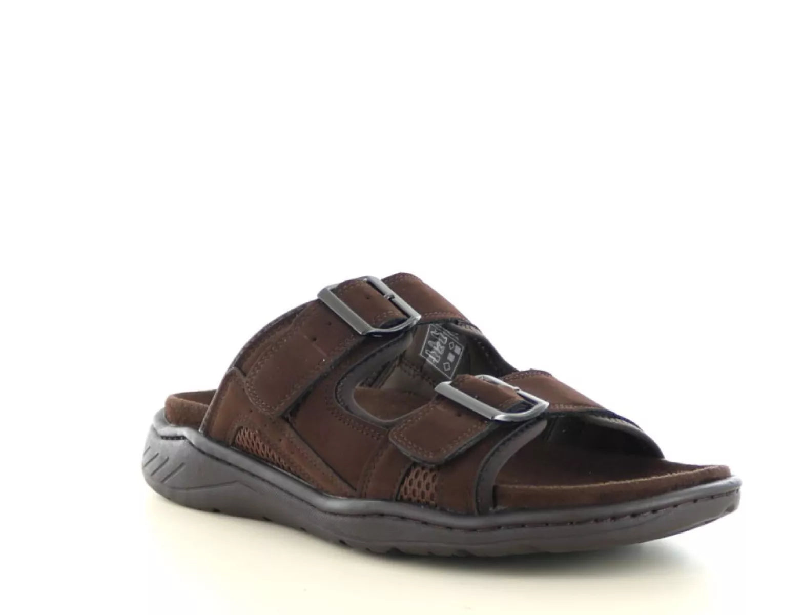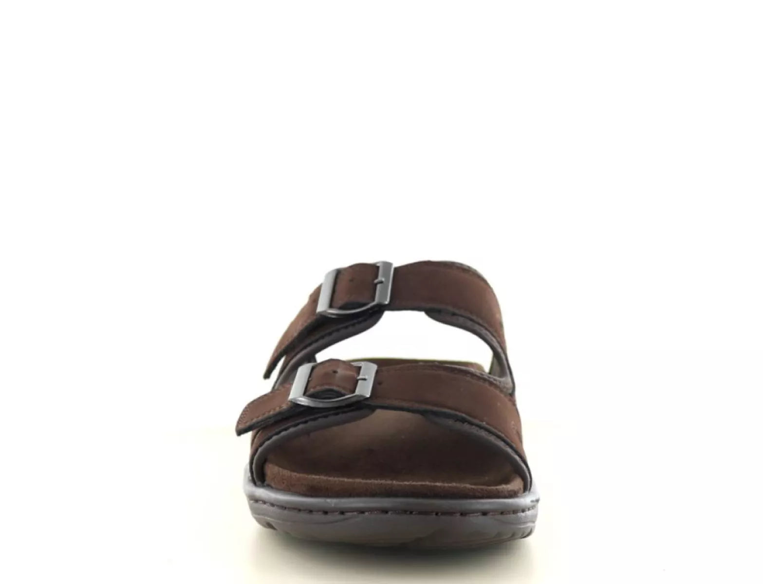 • Bequemer brauner Slipper mit doppeltem Schnallenverschluss