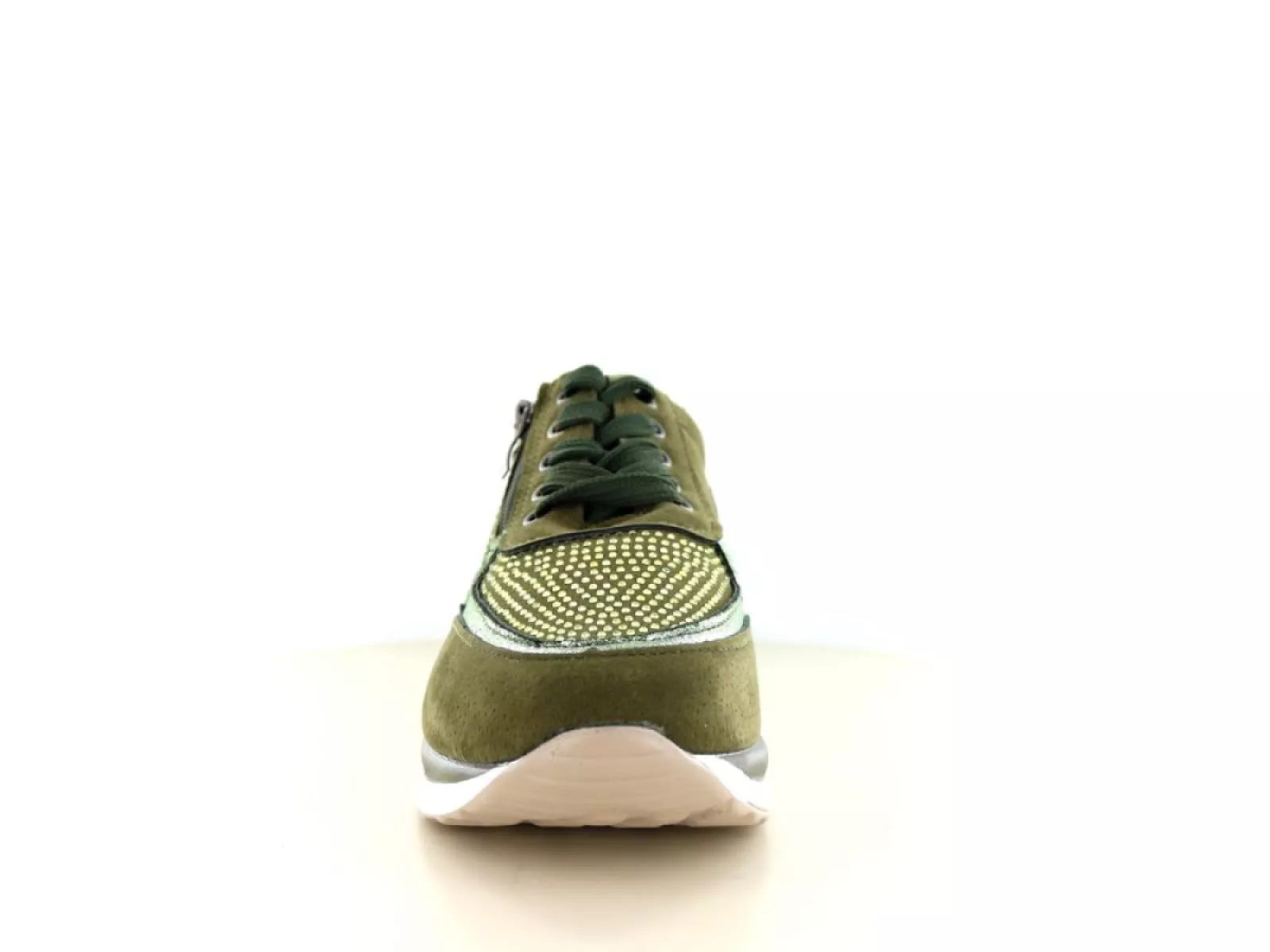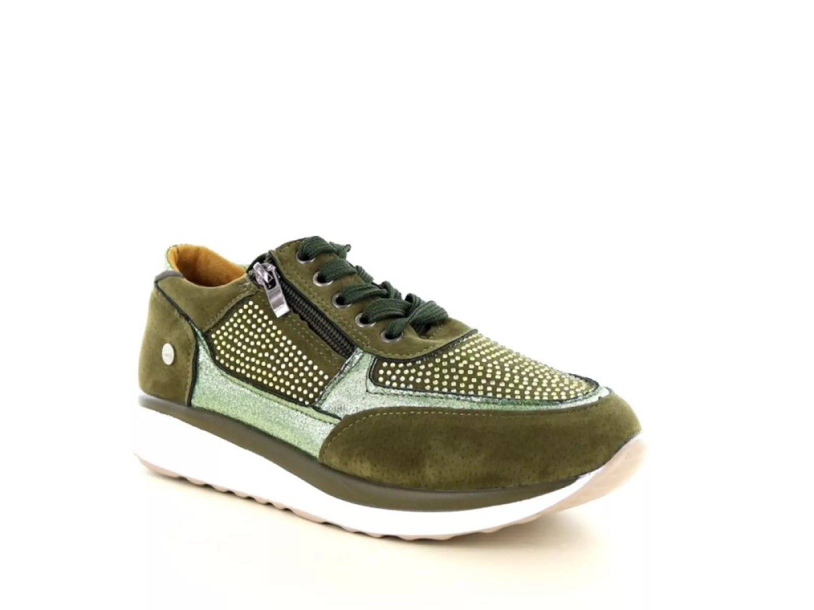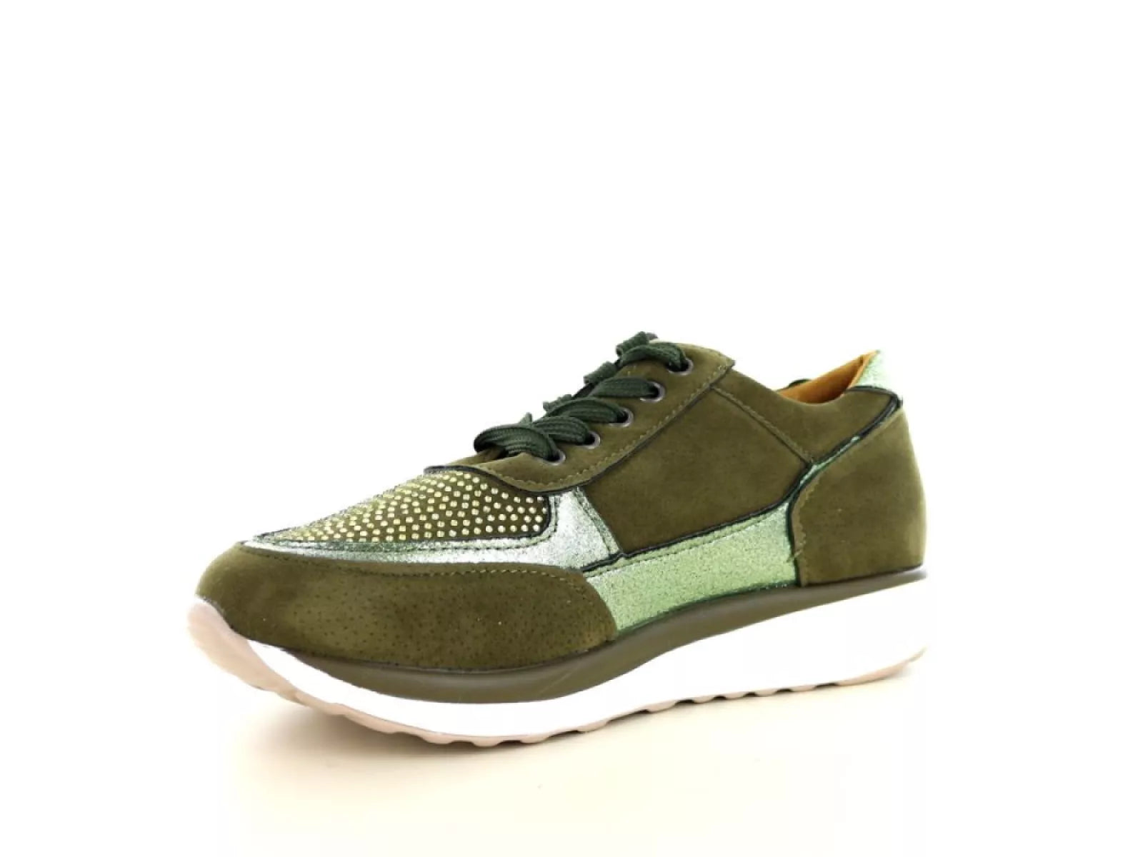Der Modena von Hafjes ist ein wunderschöner Damen-Sneaker aus Synthetik. Dieser Schuh ist in der Farbe Grün erhältlich. Der Verschluss erfolgt über einen Reißverschluss und Schnürsenkel. Der Modena ist ein wunderbar leichter Sneaker mit einer gut dämpfenden Sohle.