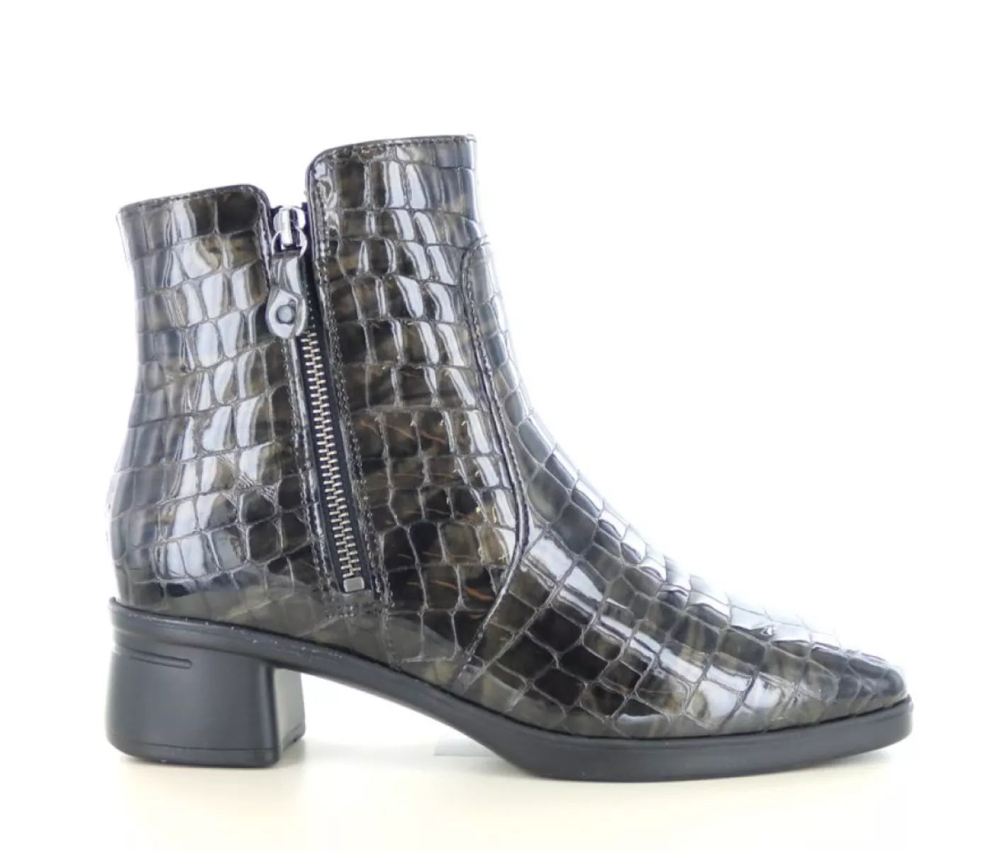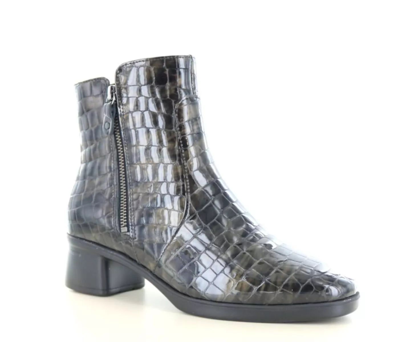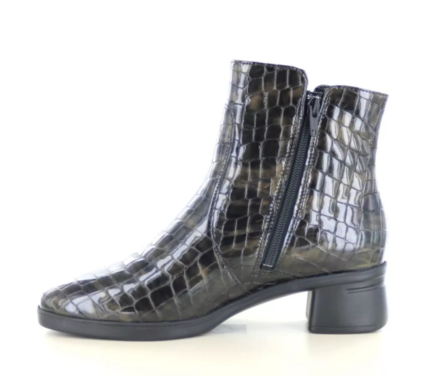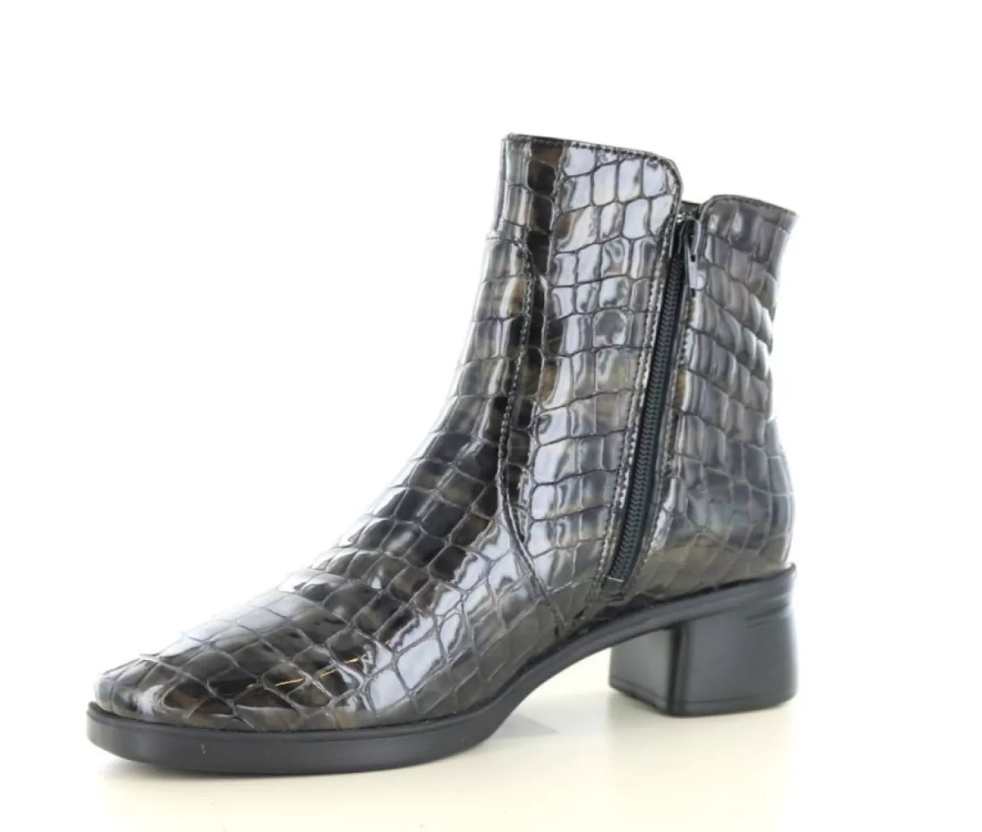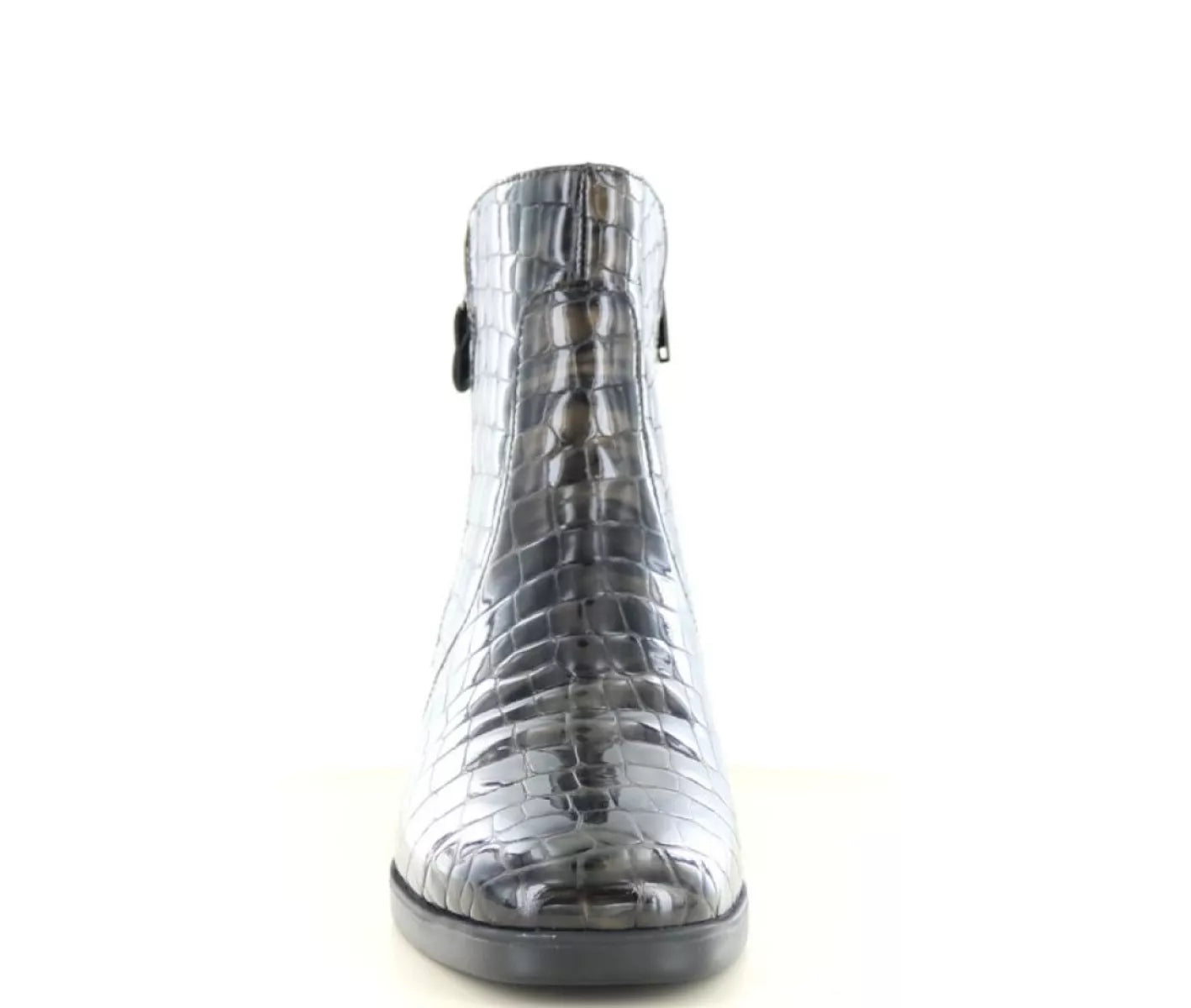 - Stylische Damen Stiefeletten aus Lackleder mit Krokoprägung
