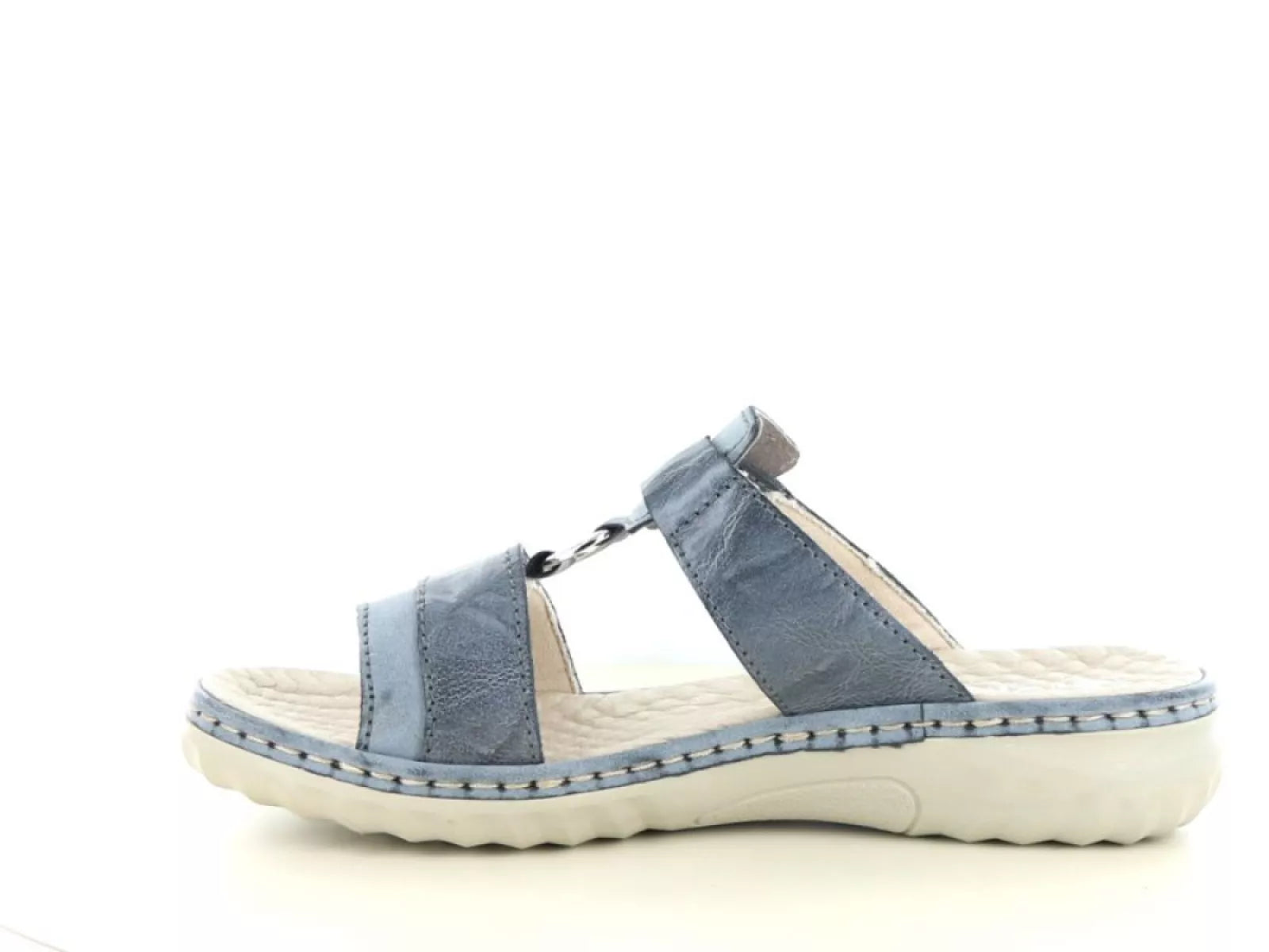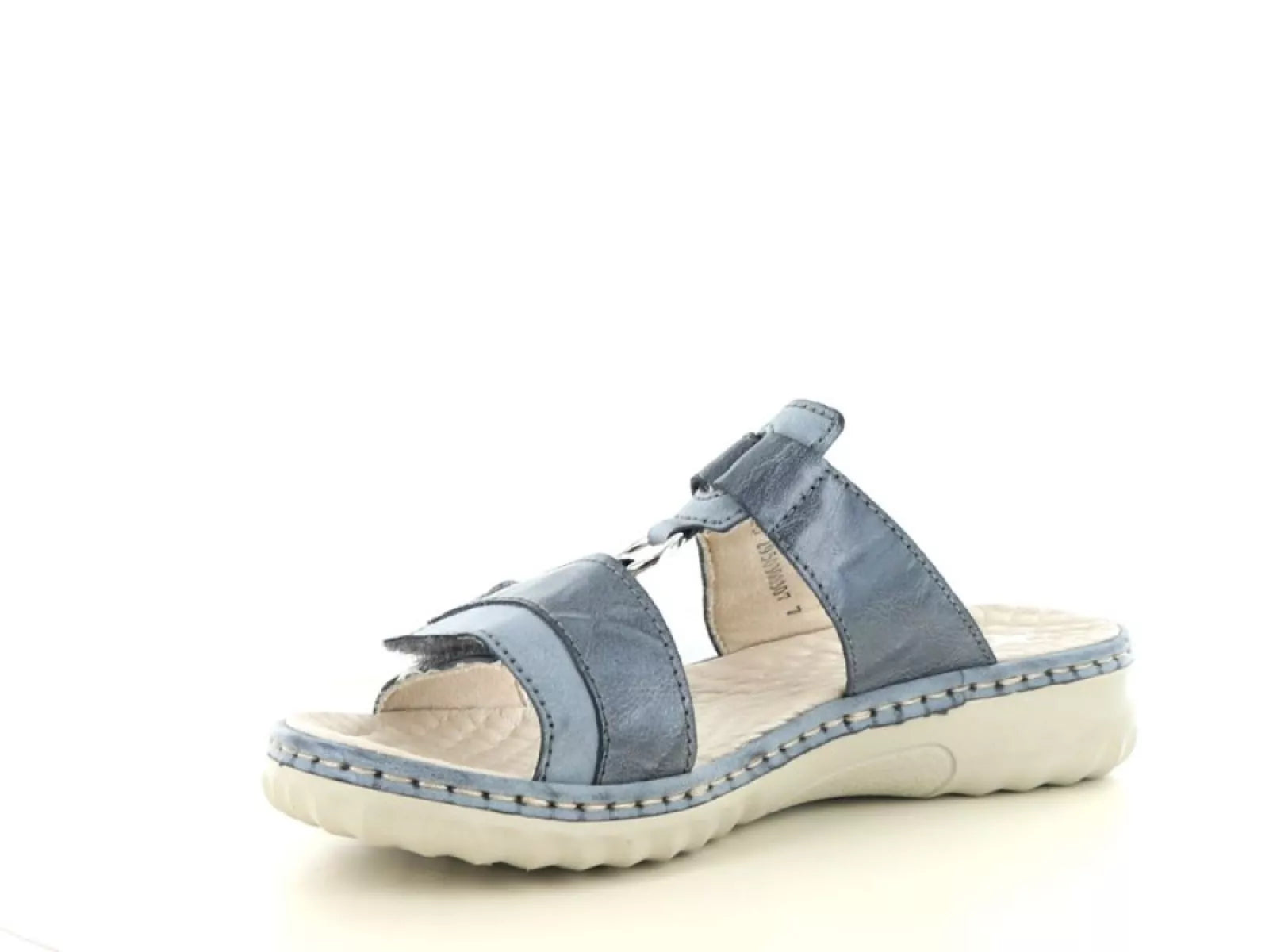 Der Rieker 60428-14 Damen-Slipper in der Farbe Atlantik vereint Stil und Komfort auf einzigartige Weise. Das Obermaterial aus hochwertigem Synthetikmaterial in Lederoptik sorgt für einen luxuriösen Look, während das weiche Textilfutter an warmen Tagen für atmungsaktiven Tragekomfort sorgt. Das vorgeformte, weiche Fußbett bietet langanhaltenden Tragekomfort, ideal für den Alltag. Dank der doppelt verstellbaren Klettverschlüsse lässt sich die Passform leicht an den Fuß anpassen, was für zusätzlichen Halt und Stabilität sorgt. Die leichte Gummilaufsohle mit Anti-Rutsch-Profil bietet hervorragenden Halt auf verschiedenen Oberflächen, und die Absatzhöhe von ca. 4,5 cm sorgt für eine dezente Erhöhung, ohne Kompromisse beim Komfort einzugehen.