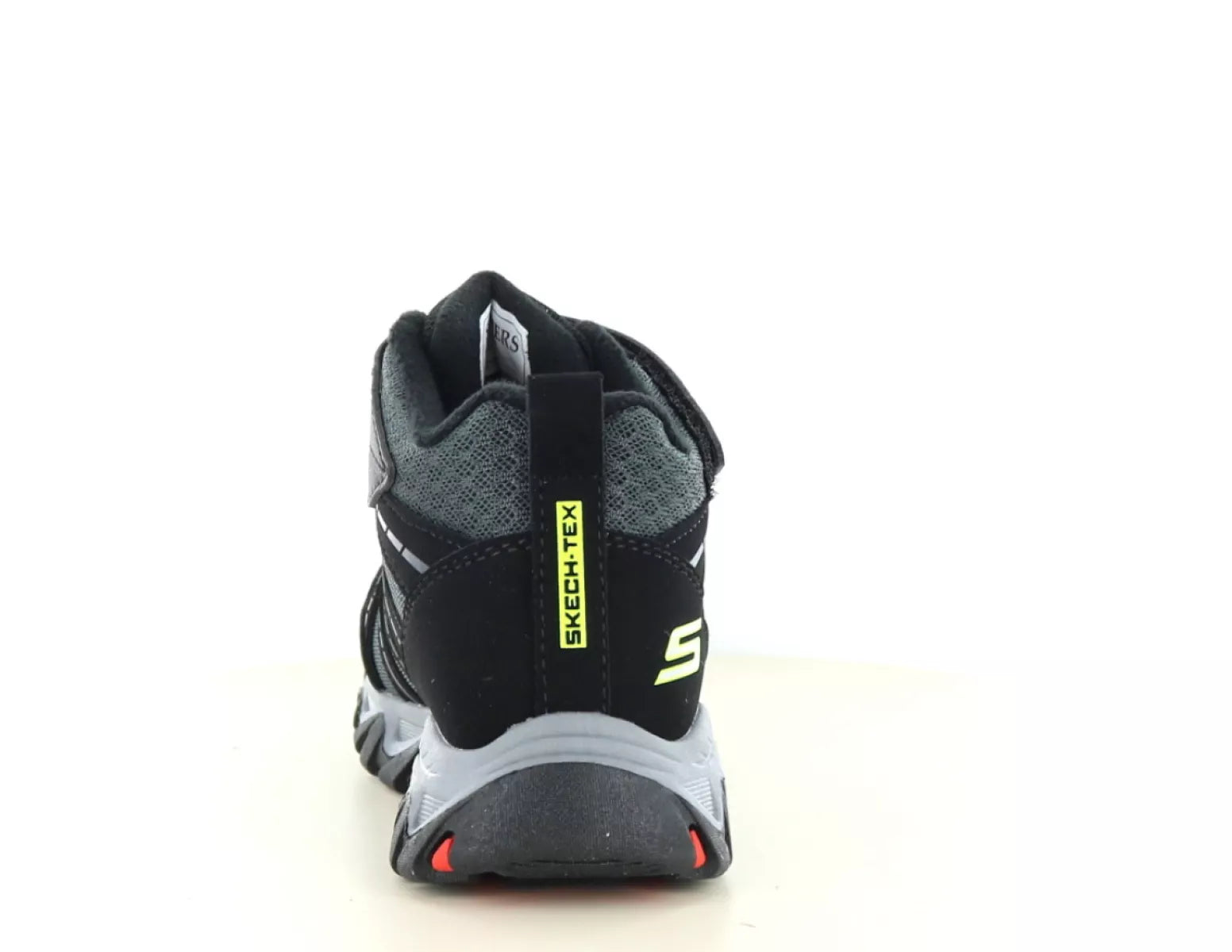 Mit dem Skechers 406412 ist Ihr Kind für jedes Abenteuer bereit – egal ob Regen, Wind oder Sonnenschein. Dieser stylische, halbhohe Jungenschuh in Schwarz mit grauen Akzenten vereint sportlichen Style mit praktischer Funktionalität. Das wasserdichte Obermaterial hält die Füße trocken, während die robuste Profilsohle hervorragenden Halt auf unterschiedlichsten Untergründen bietet.