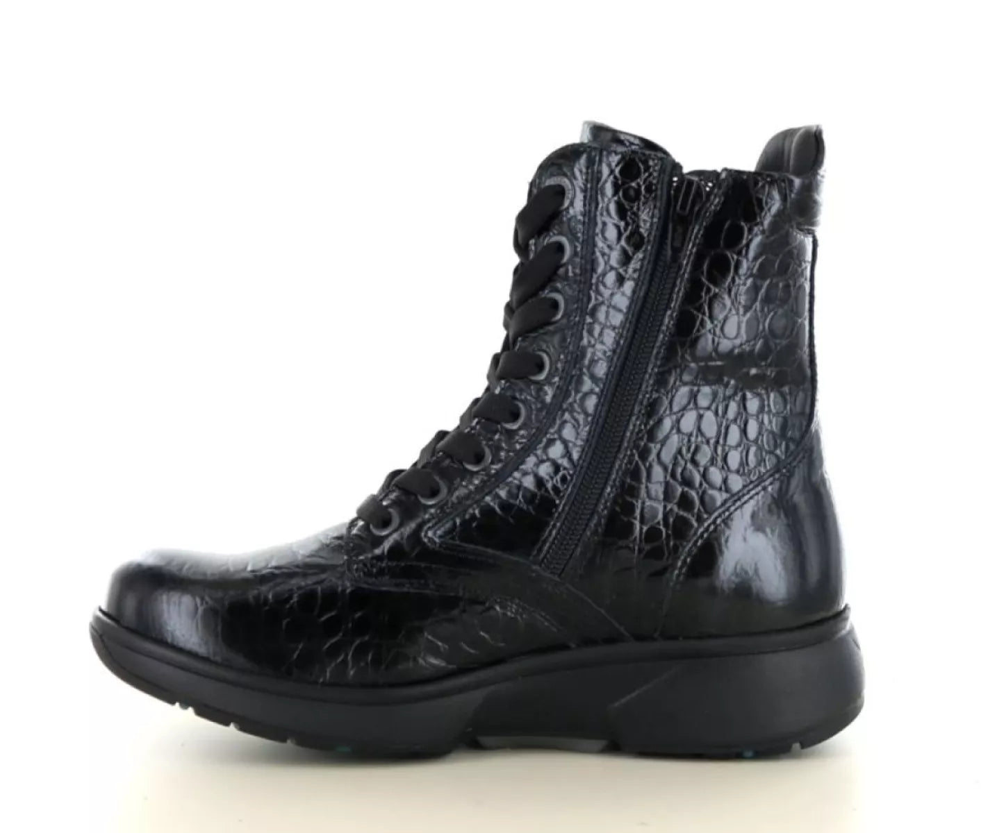 Entdecken Sie die perfekte Balance zwischen Eleganz und Komfort mit dem Xsensible Stretchwalker 261.90.527 Schnürstiefel . Dieser Damenschuh aus stylischem schwarzem Leder mit modernem Kroko-Print vereint Mode mit Funktionalität. Dank der Kombination aus Schnürung und Reißverschluss lässt sich der Schuh leicht anziehen und sorgt für eine perfekte Passform.