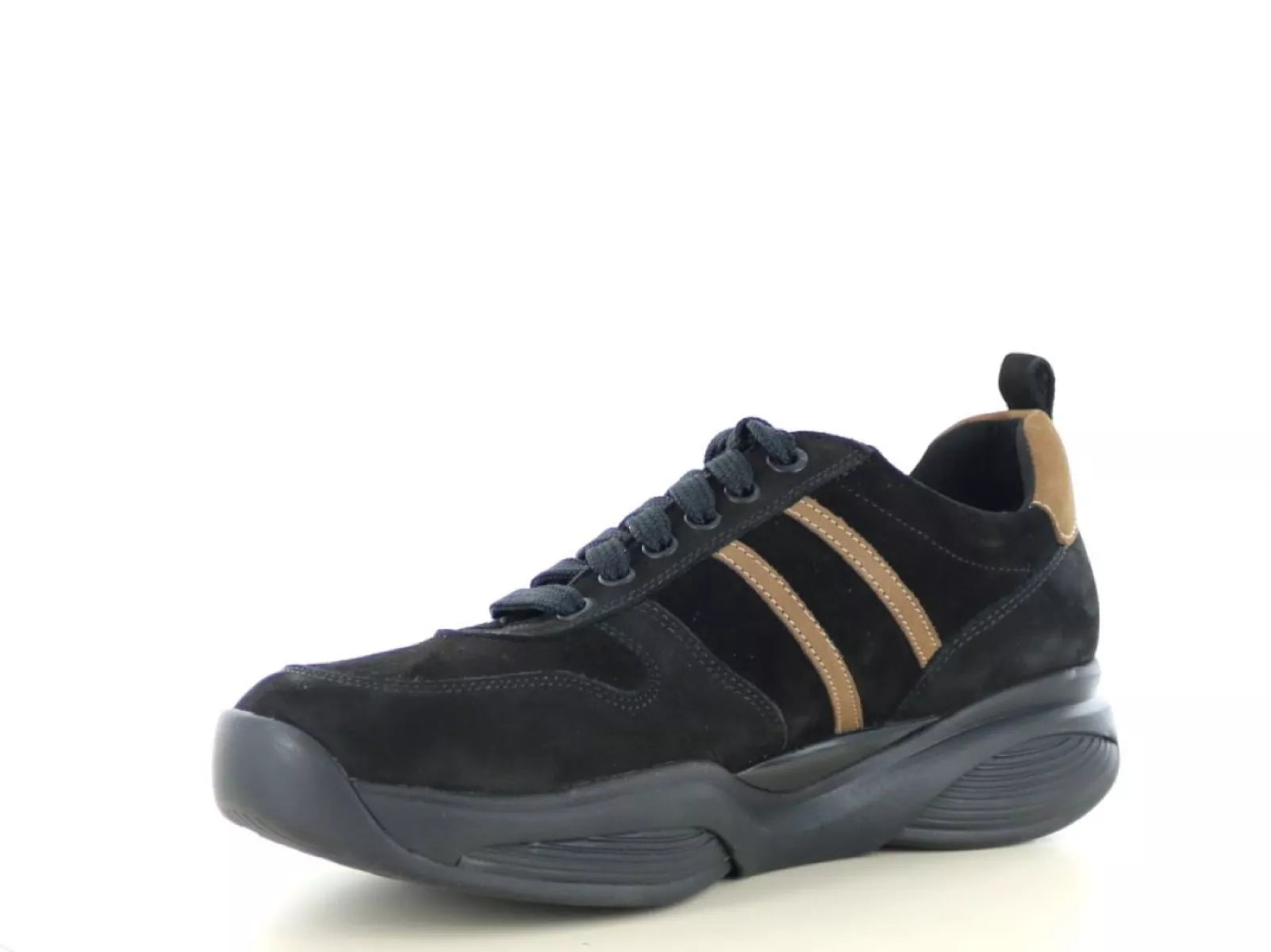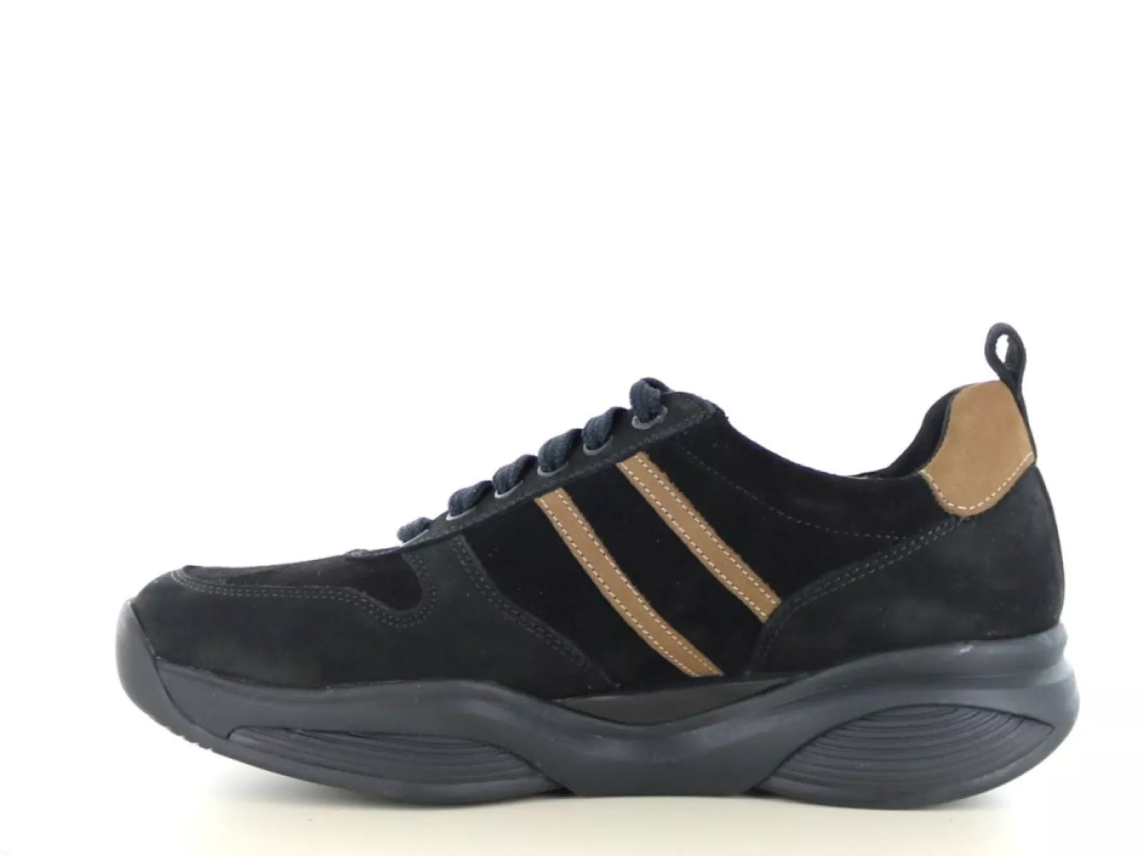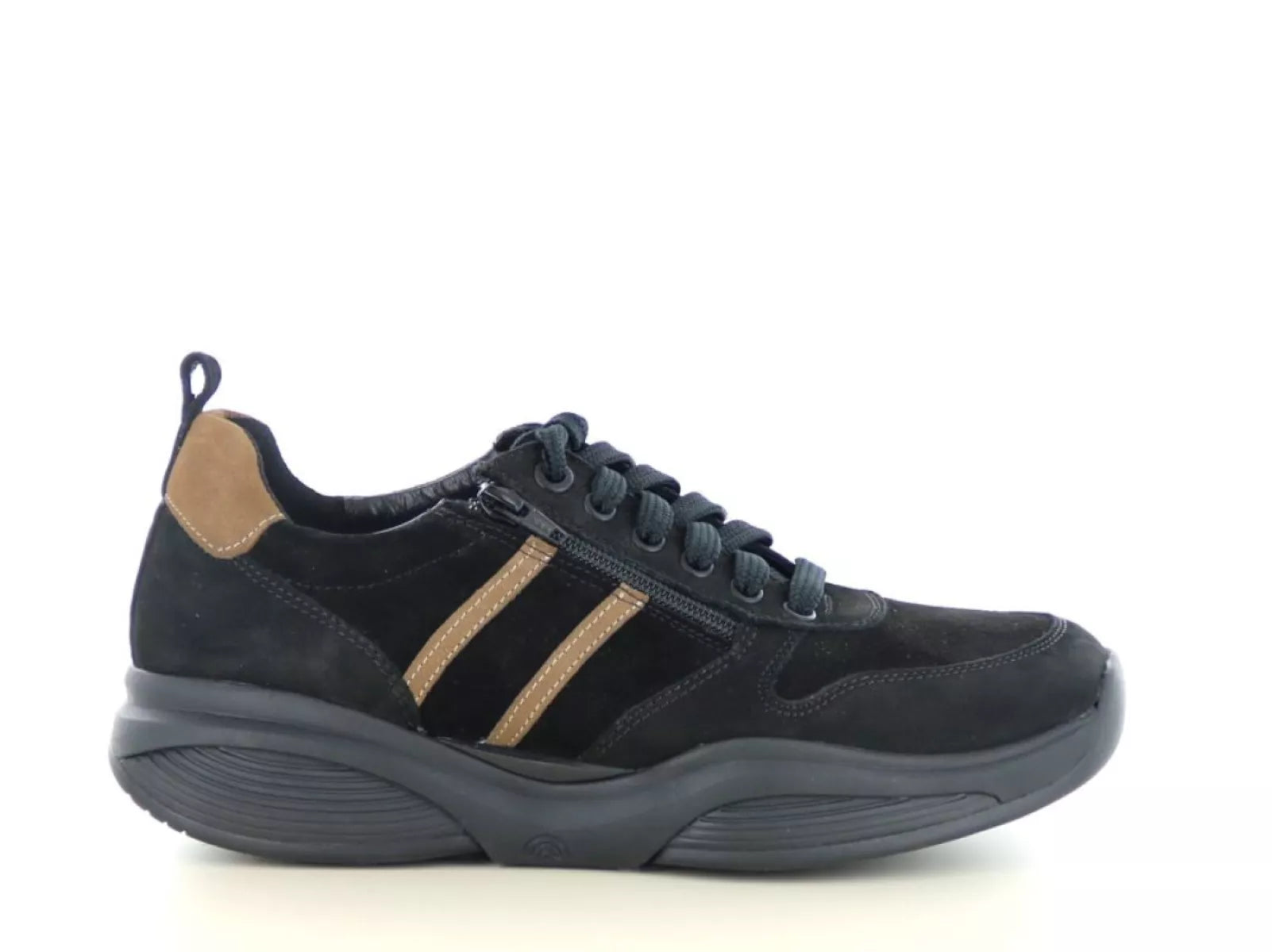 Der Xsensible Stretchwalker SWX3 30073.2 in Schwarz-Kombination ist der perfekte Sneaker für Männer, die höchsten Tragekomfort und optimale Unterstützung suchen – und dabei Wert auf einen sportlichen Look legen. Das Obermaterial besteht aus hochwertigem Veloursleder in zeitlosem Schwarz und wird durch warme cognacfarbene Akzente abgerundet.