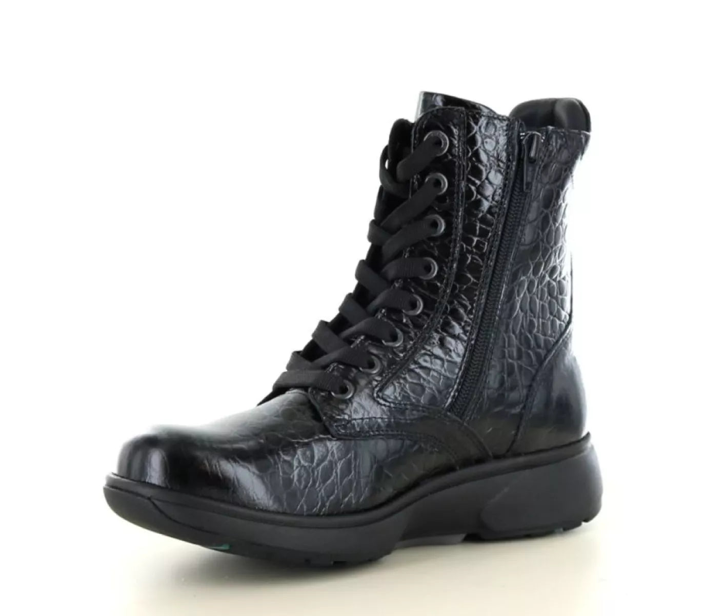 Entdecken Sie die perfekte Balance zwischen Eleganz und Komfort mit dem Xsensible Stretchwalker 261.90.527 Schnürstiefel . Dieser Damenschuh aus stylischem schwarzem Leder mit modernem Kroko-Print vereint Mode mit Funktionalität. Dank der Kombination aus Schnürung und Reißverschluss lässt sich der Schuh leicht anziehen und sorgt für eine perfekte Passform.