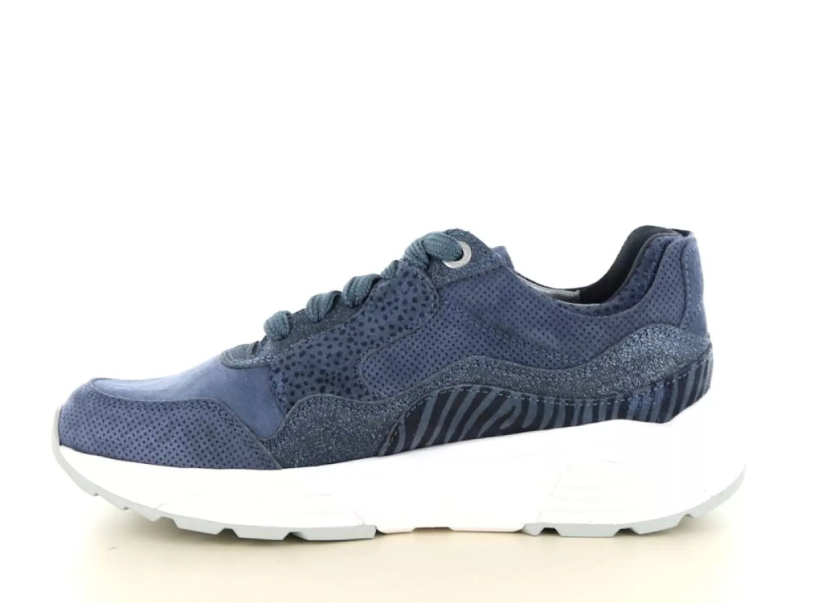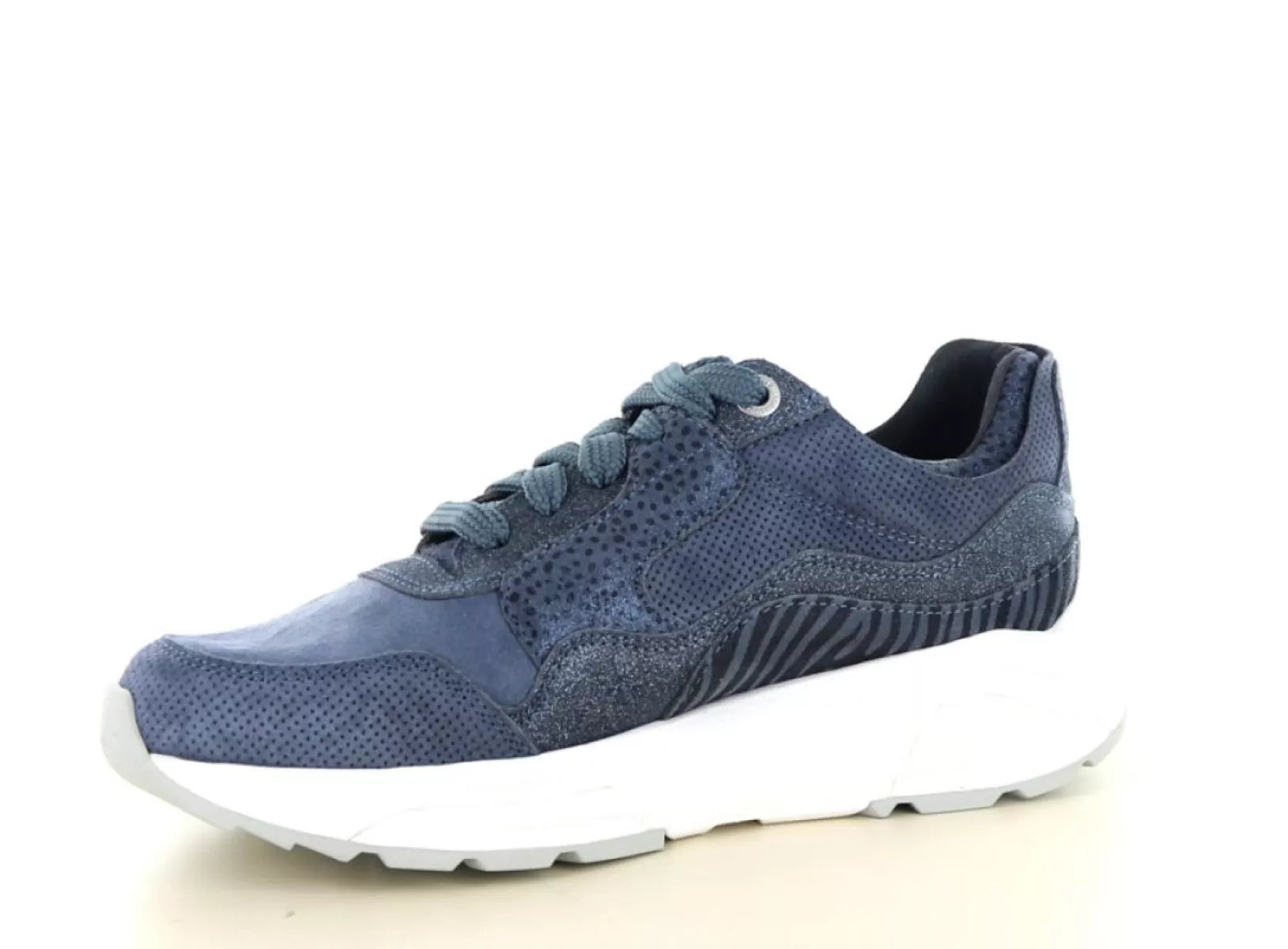 Die Weite G½ sorgt für bequemen Tragekomfort, und dank des austauschbaren Fußbetts eignen sich diese Sneaker auch für Ihre eigenen orthopädischen Einlagen. Die stylische denimblaue Farbe mit dezenten Details macht dieses Modell vielseitig kombinierbar – sowohl zu lässigen als auch zu sportlichen Outfits.