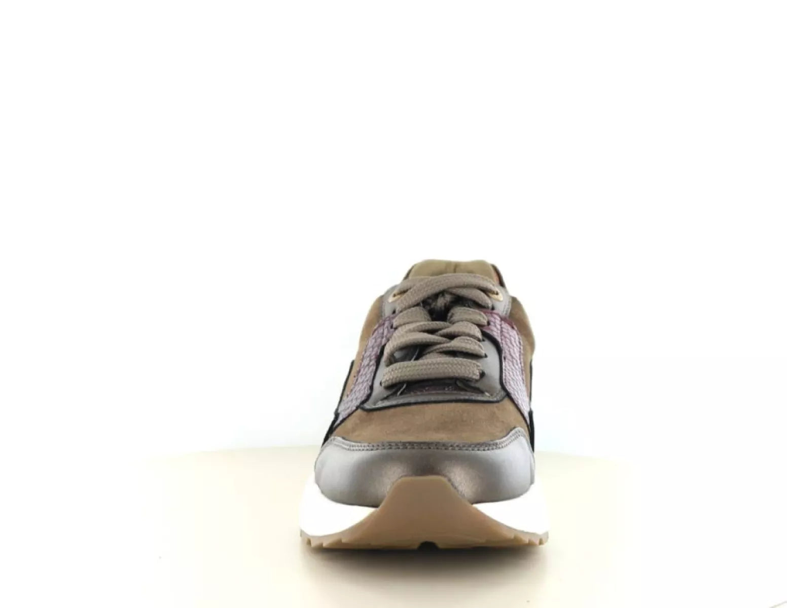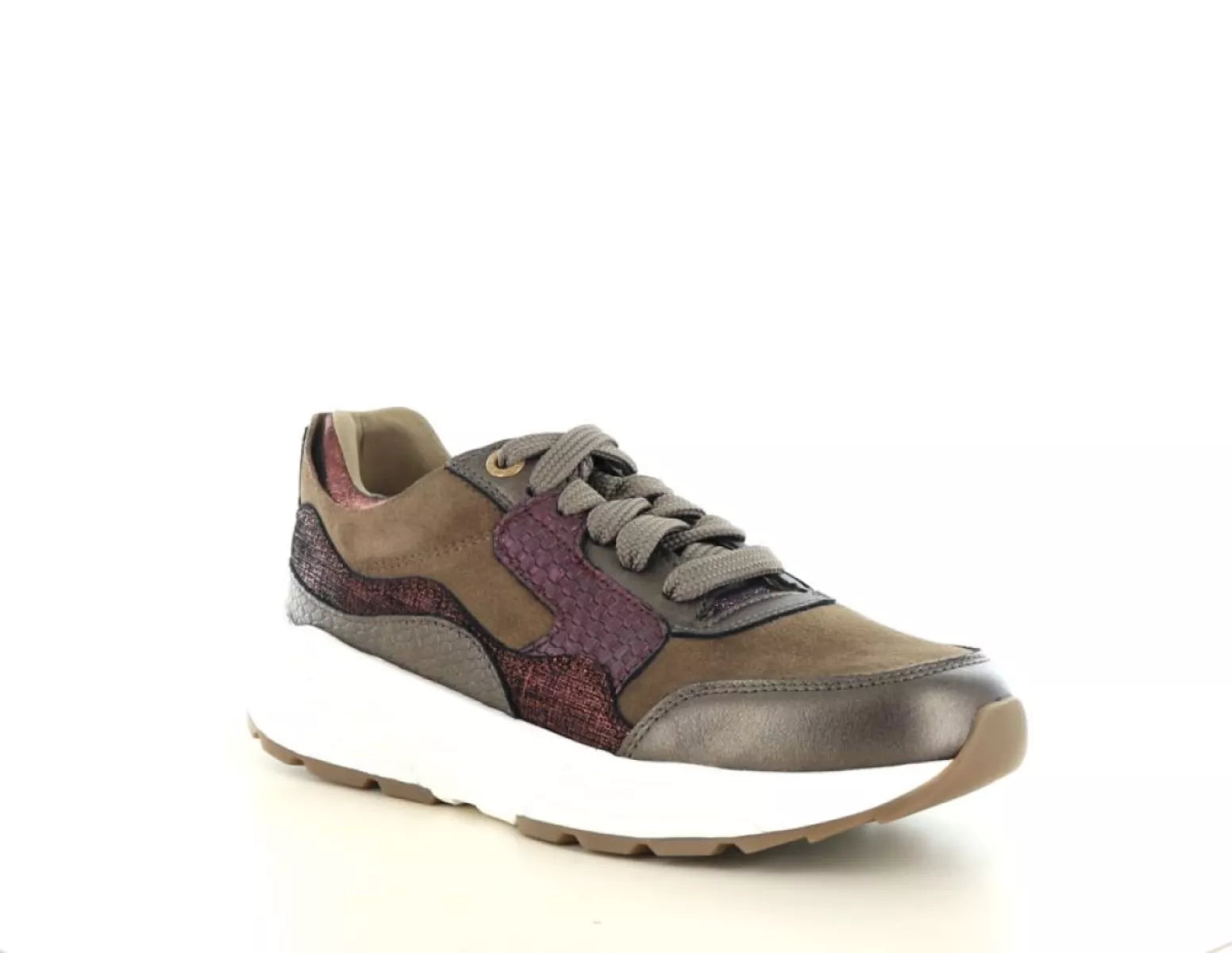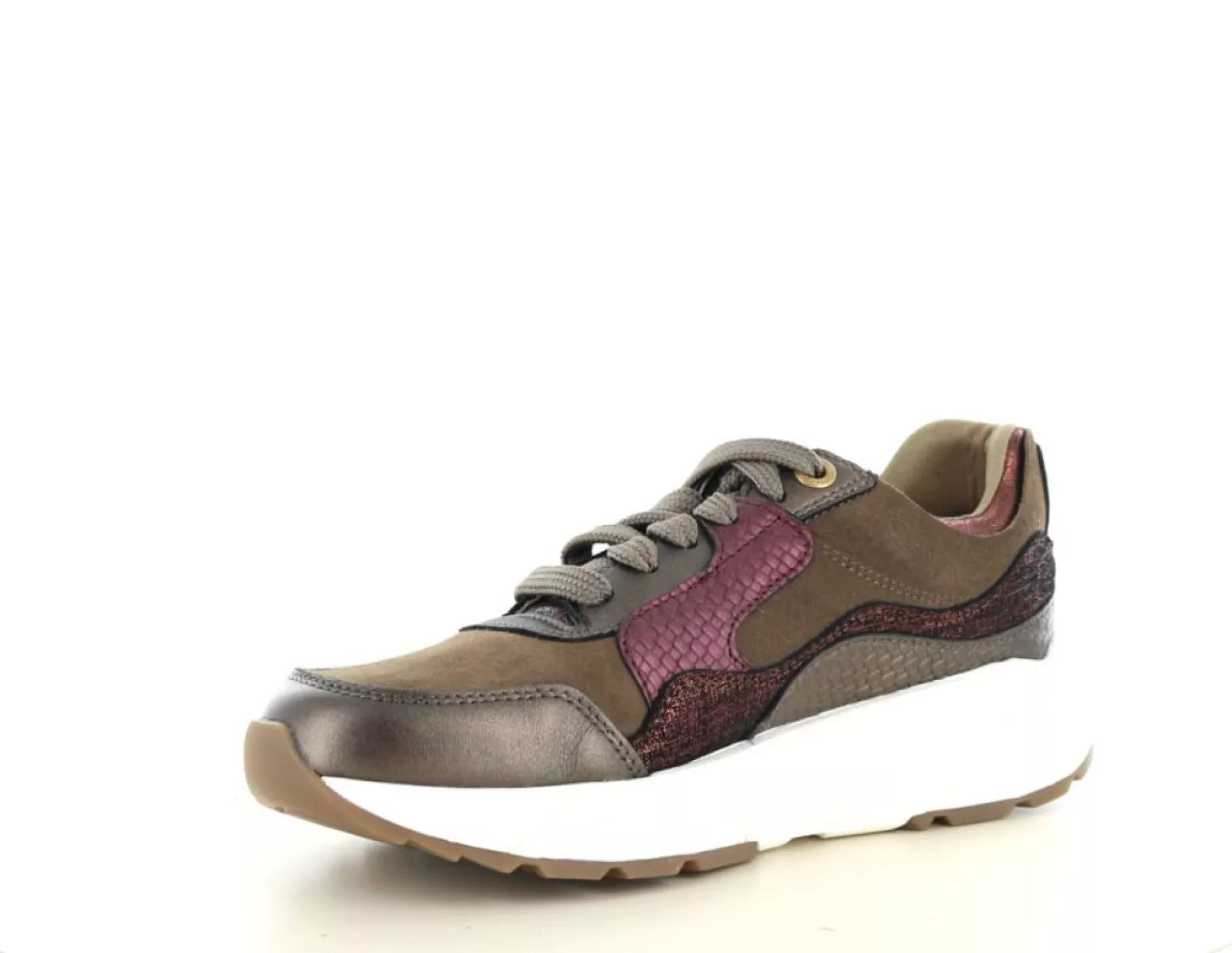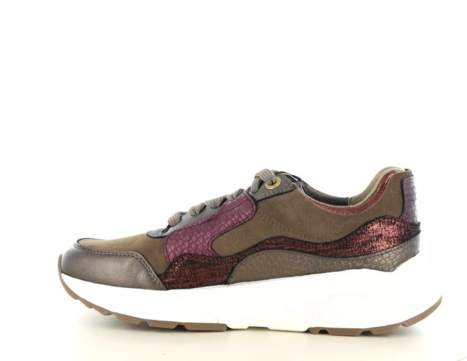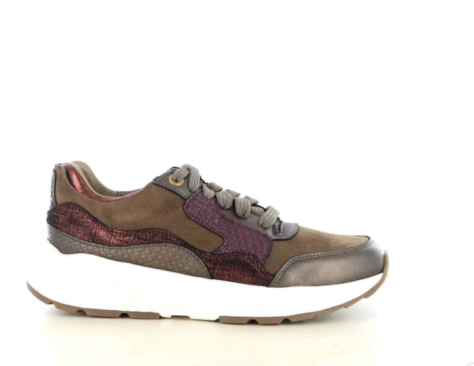 - Modischer Damen-Sneaker aus hochwertigem Leder und Wildleder in einer luxuriösen Bronze- und Burgunder-Kombination