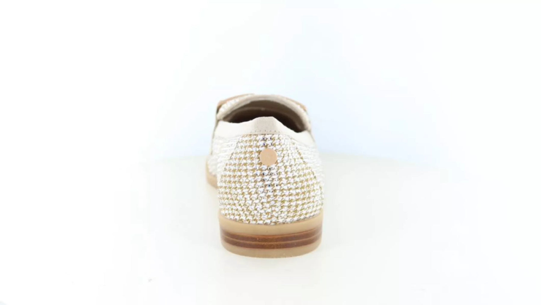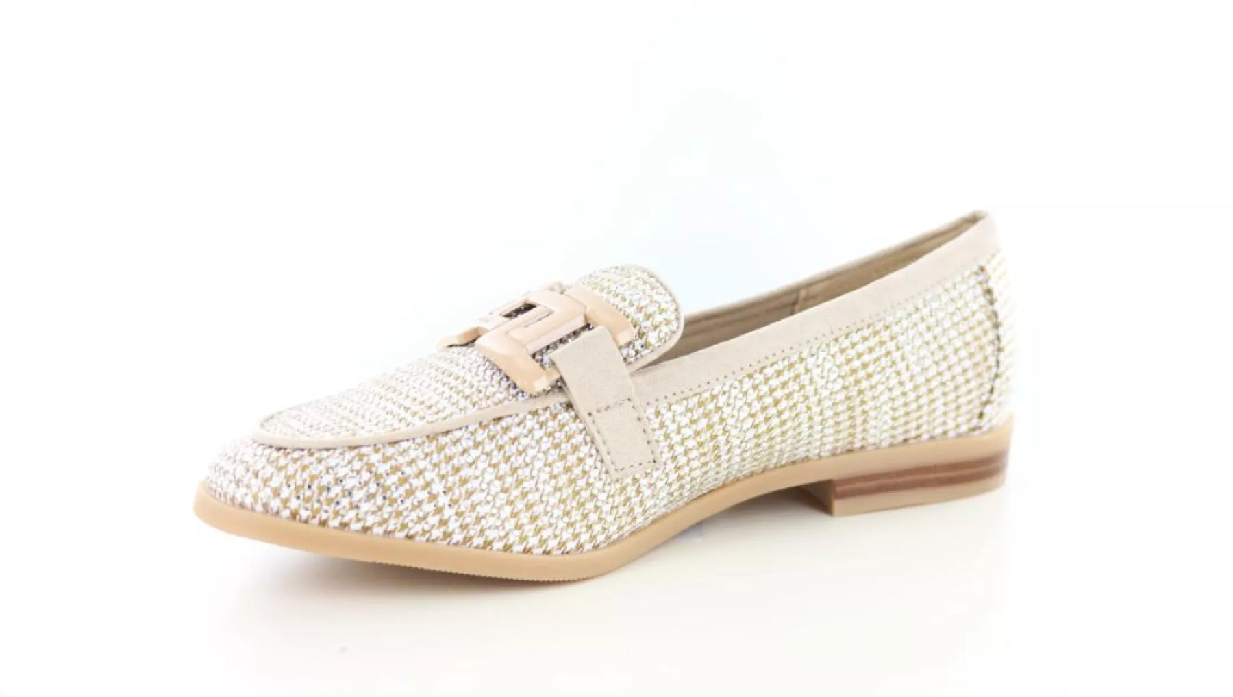 De La Strada 2520640 dames instapper in de kleur 4025 Taupe is een elegante en veelzijdige schoen die stijl en comfort perfect combineert. Deze modieuze dames loafer heeft een verfijnd geweven bovenwerk met subtiele taupe- en goudtinten, waardoor de schoen een luxe en moderne uitstraling krijgt.