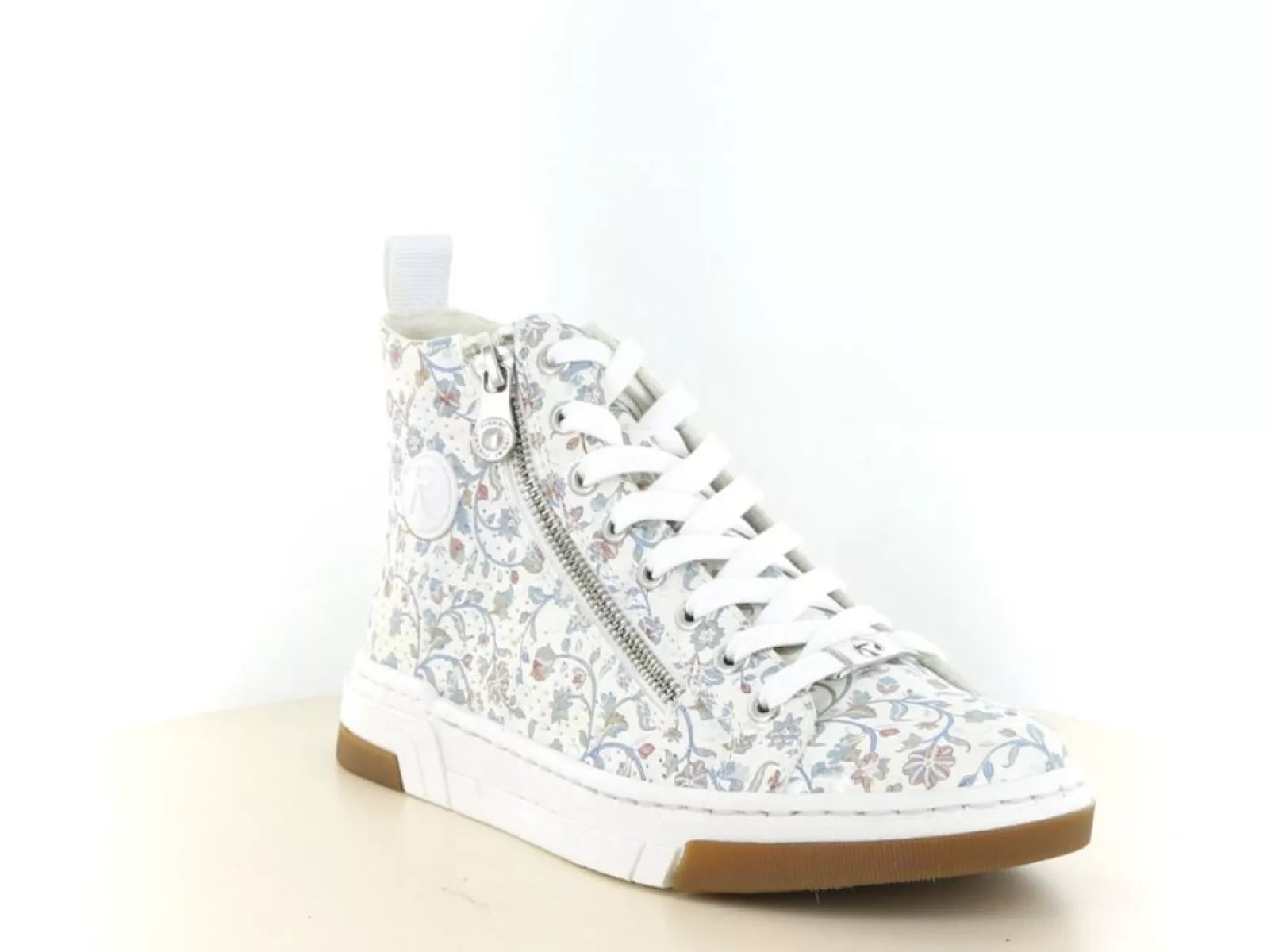 Der Rieker N3945 in Weite G und der Farbe 92 Weiß/Multi ist ein stylischer, mittelhoher Damen-Schnürschuh, der Komfort und einen verspielten Look perfekt vereint. Das strahlend weiße Leder mit dezentem Blumenmuster verleiht diesem Sneaker einen einzigartigen, sommerlichen Look, der sich mühelos sowohl zu Jeans als auch zu einem Kleid kombinieren lässt.