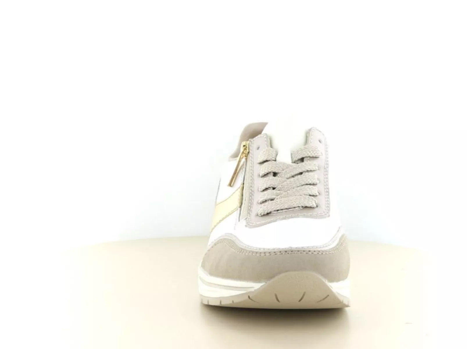 Deze veterschoen is uitgevoerd in imitatieleer in de elegante kleur lehm/champagne, een frisse en veelzijdige tint die perfect past bij zowel casual als nette outfits. De combinatie van zachte materialen en subtiele metallic accenten geeft de schoen een moderne, verzorgde look.