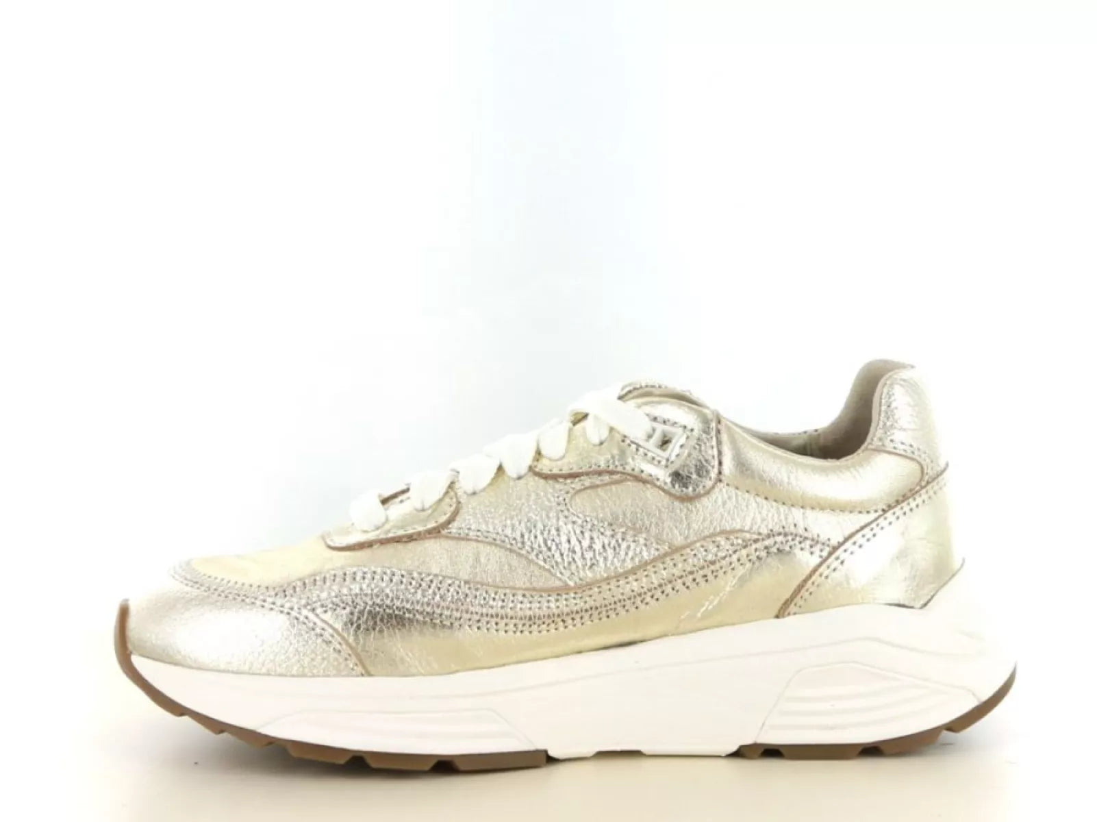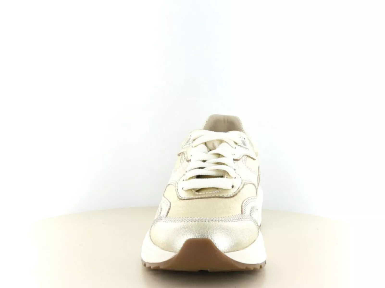 Das Obermaterial besteht aus hochwertigem Leder mit dezentem Glanz und raffinierten Details. Dadurch wirkt der Sneaker elegant und lässt sich sowohl zu sportlichen als auch zu schicken Outfits kombinieren. Tragen Sie diese goldenen Sneaker zu Jeans, Hosen oder sogar einem Kleid für einen modernen und bequemen Look.